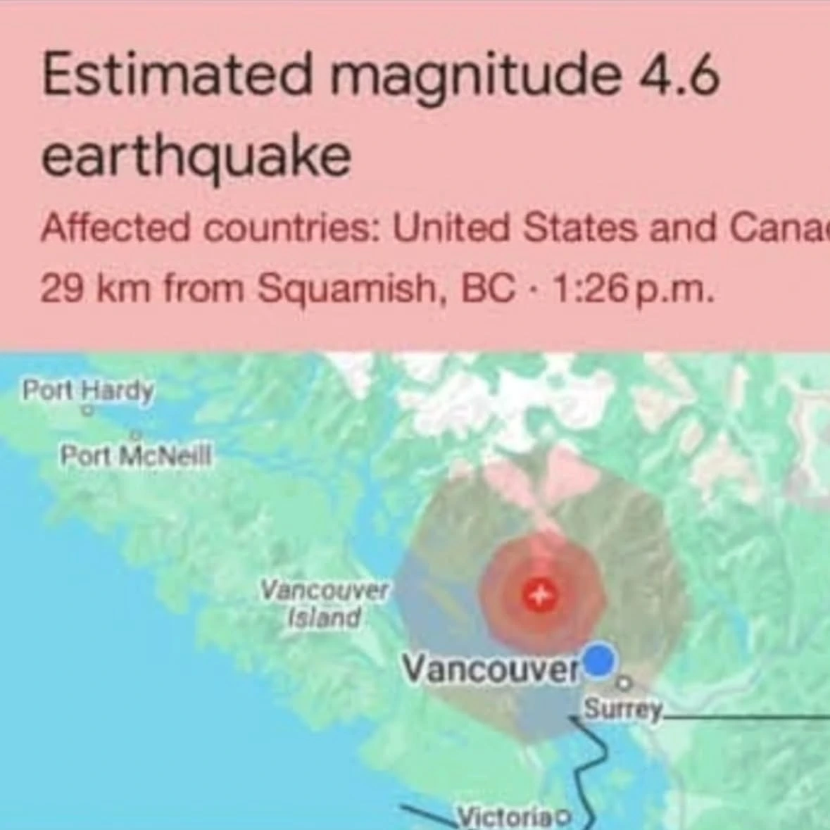 얼마 후, 같이 일하는 직원이 나보고 지진을 느꼈냐고 물어봤다. 집에서 회사에로 출근하는 동안 나는 아무것도 느끼지 못했다. 평상시와 똑같이 아무런 문제 없이 출근을 했는데 내가 출근하고 있는 그 같은 시각에 밴쿠버 서쪽 해안가 쪽에 지진이 발생했다는 것이다. 심지어 몇몇 직원들은 부서 안에서 조차 그 진동을 느꼈다는 것이다.