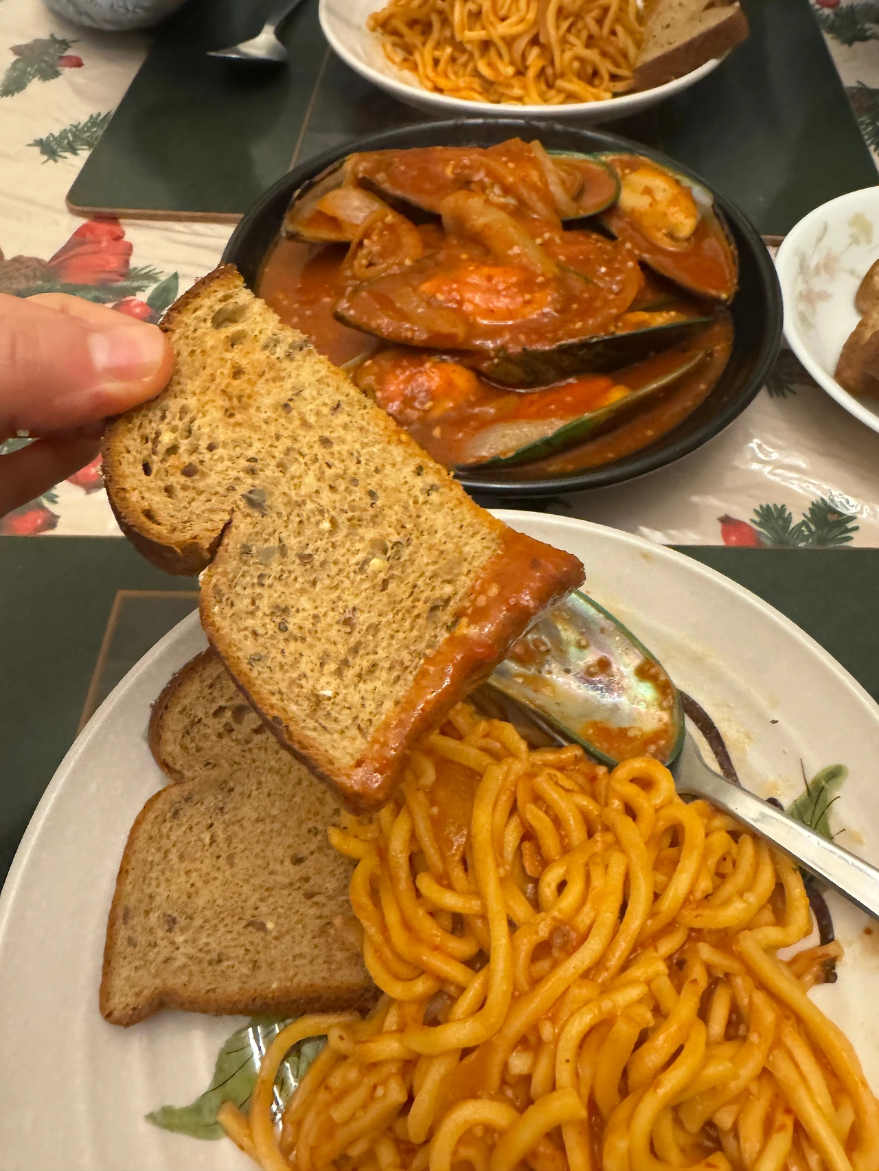 그 결과는 대성공!! 일단 류 선생의 레시피는 정말 대단했다. 홍합 요리는 처음 해보는지라 과연 어떤 맛이 날지 확신이 없었는데 생각보다 파스타 국물이 너무 맛있어서 빵까지 준비해서 찍어먹었다. 남편 또한 파스타면보다는 차우면으로 먹는 게 식감이 더 좋았다고 했다.