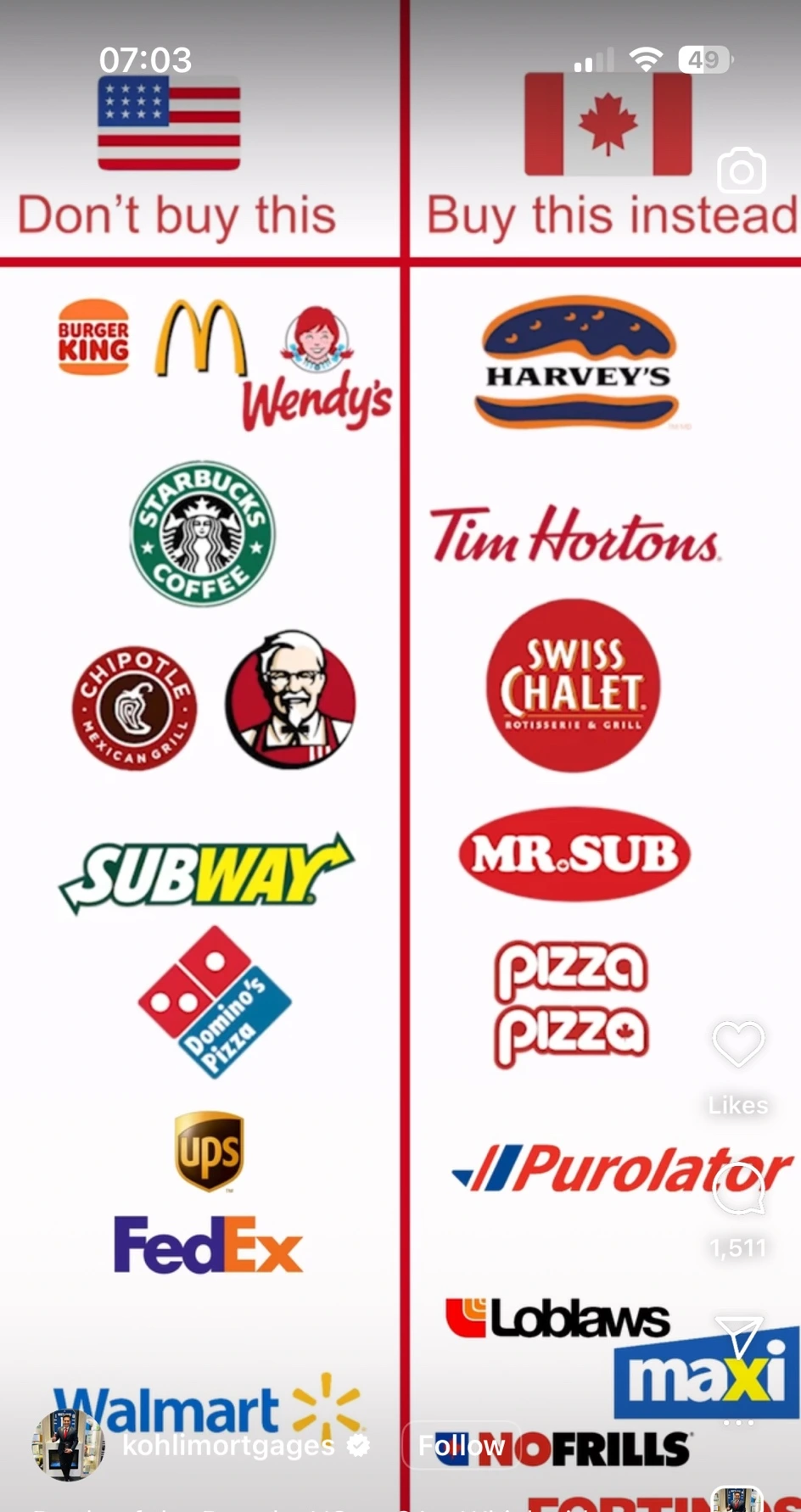 솔직히 캐나다제품보다는 미국제품이 현재 더 저렴한 건 사실이다. 불매운동의 일환으로 캐나다제품을 구매하는 것은 좋은 현상이지만 그동안 미국제품에 익숙해진 사람들이 쉽게 캐나다제품으로 교체하는 것은 힘든 일이다. 결국 사람들은 제 아무리 국산품을 이용하려고 한다지만 결국 저렴한 물건을 찾게 되어 있다. 관세가 적용되는 시점에서는 입장이 달라지겠지만. 아무리 made in China를 싫어해도 어쩔 수 없이 구매하는 것처럼 말이다.