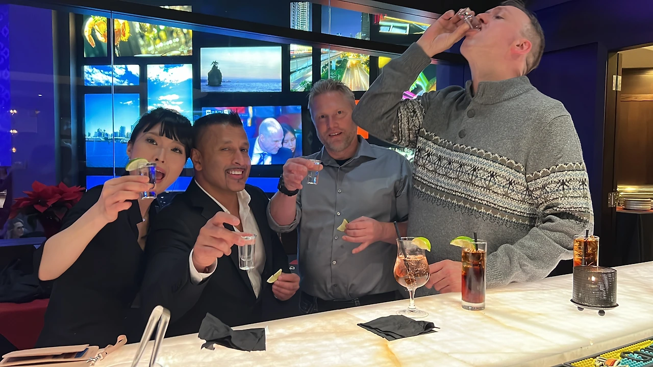 준비된 뷔페에서 음식을 원하는 만큼 먹고 매지먼트들이 준비한 이벤트도 즐기고 라이브 밴드와 함께 댄스타임도 갔고 술을 못 마시는데도 bar에서 술도 주문해 보고 그냥 내게 주어진 시간을 제대로 즐겼던 것 같다.