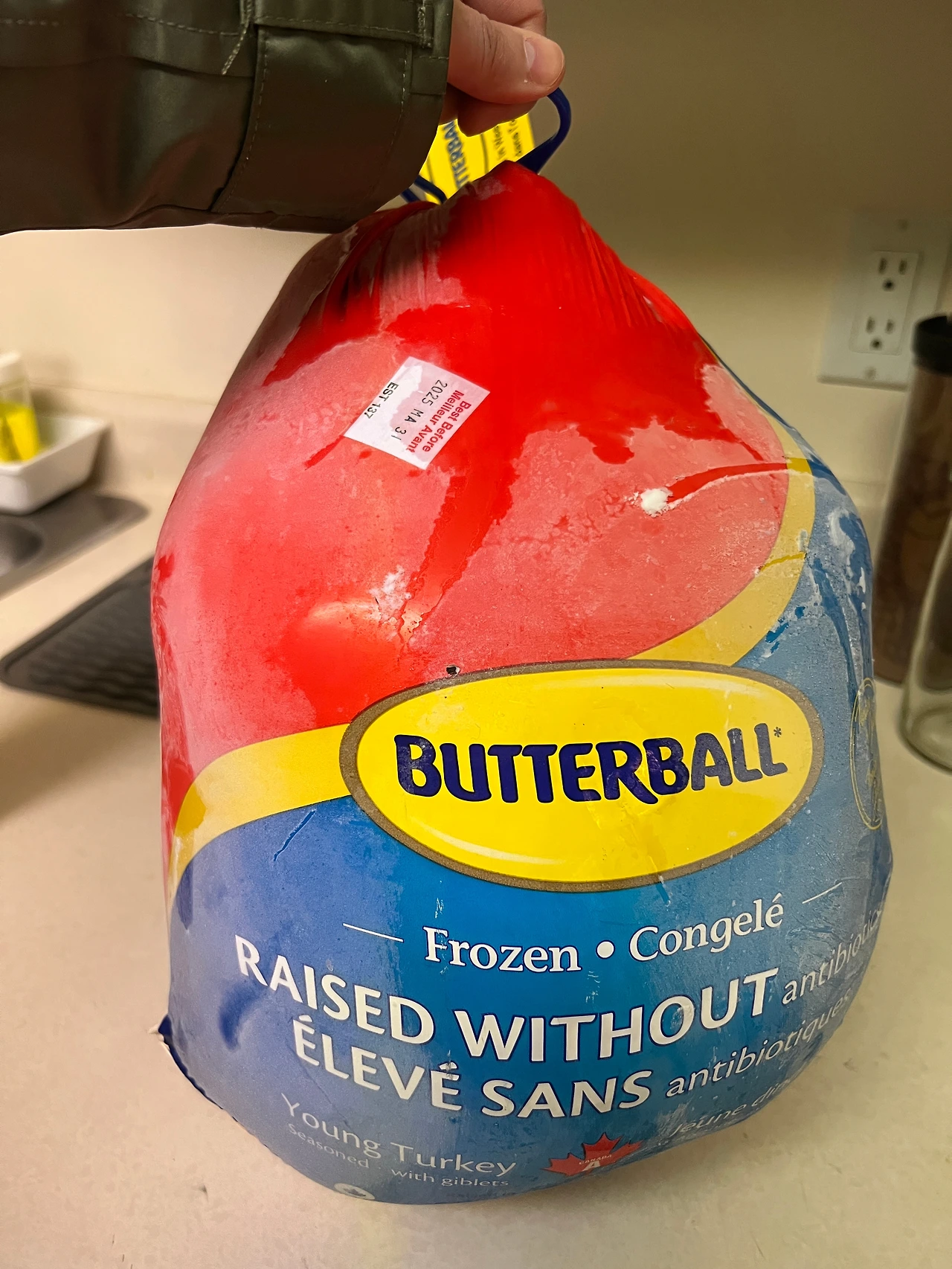 올해도 변함없이 냉동 칠면조를 받았다. 작년에 제대로 오븐구이를 하지 못했기에 이번엔 안 받으려 했으나