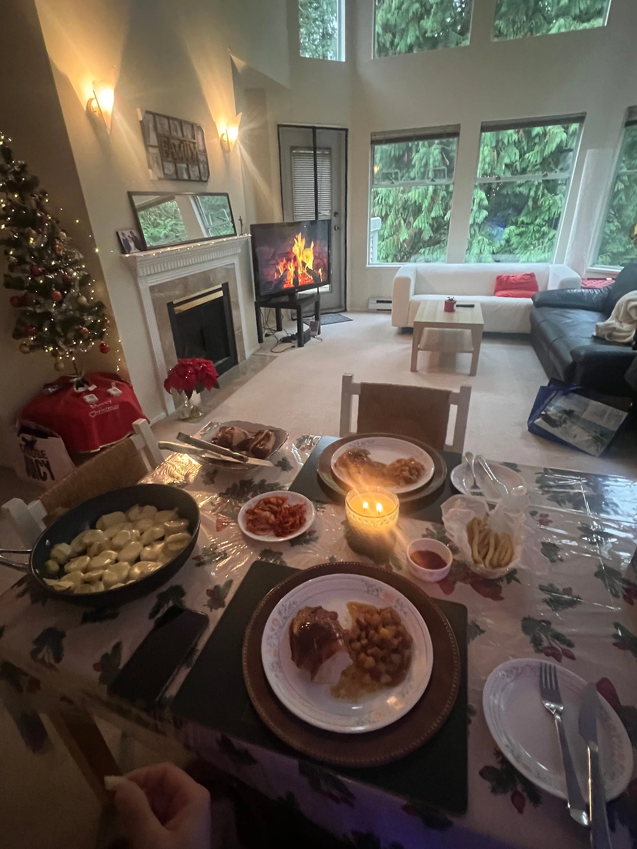 한국에선 크리스마스에 첫눈 챌린지를 하는 동안, 캐나다에서 나는 낮임에도 불구하고 어둑 컴컴한 크리스마스날에 하루종일 켜놓은 크리스마스 라이트와 음악과 함께 Turkey 챌린지를 하면서 하루를 보냈다.
