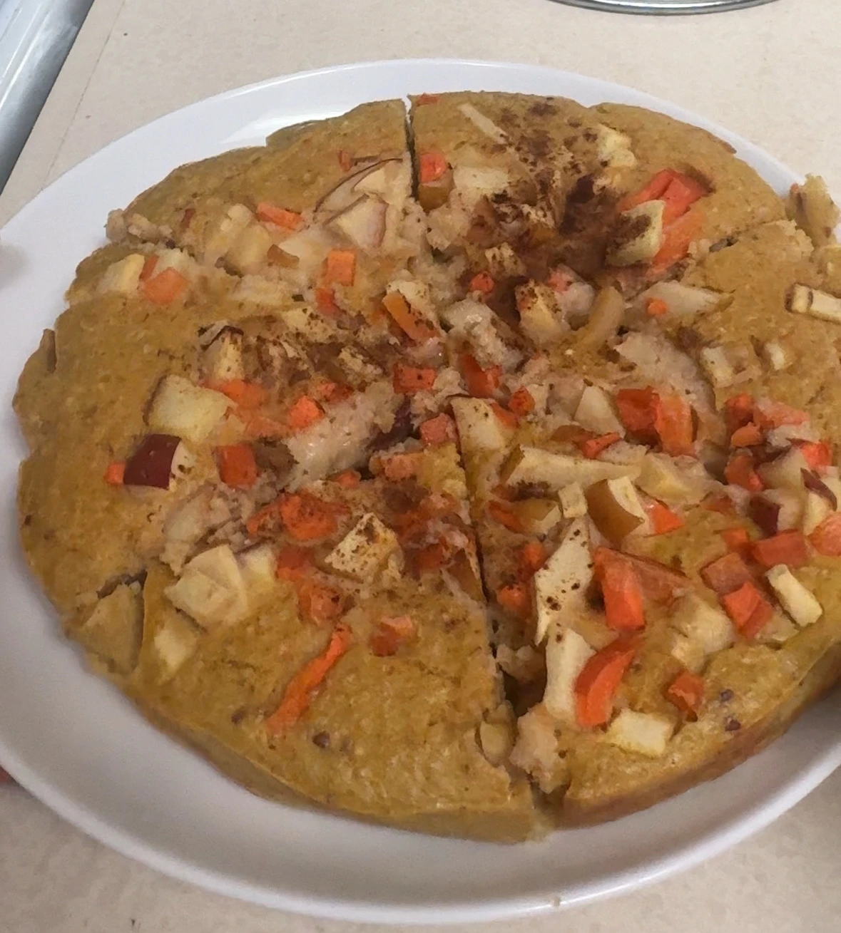 그릭 요거트를 조금 먹고, 샌드위치도 만들어 같이 먹었어. 그 뒤엔 블로그용 요리를 시작했는데 두 가지를 했어. 하나는 사과·당근·오트밀을 넣은 건강빵, 다른 하나는 밀프렙용 돼지불고기. 불고기는 많이 먹진 않고 맛만 조금 봤지. 남편은 건강식 맛을 별로 안 좋아해서 빵은 사실상 내 간식이야.