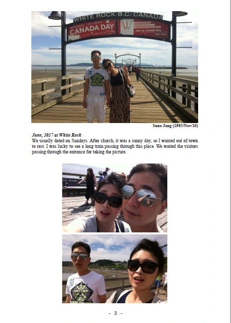 영주권 서류를 준비하면 가장 신경 써야 할 부분은 바로 증거사진자료이다. 정말로 이 두 사람이 커플인지를 증명해야 하는 부분인데 데이트 사진 20장 정도를 육하원칙대로 설명을 덧붙여서 첨부해야 한다. 물론 결혼사진도 필수. 그래서 한국에서의 결혼식이 필요했던 이유이다. 물론 한국에서의 혼인신고서까지.