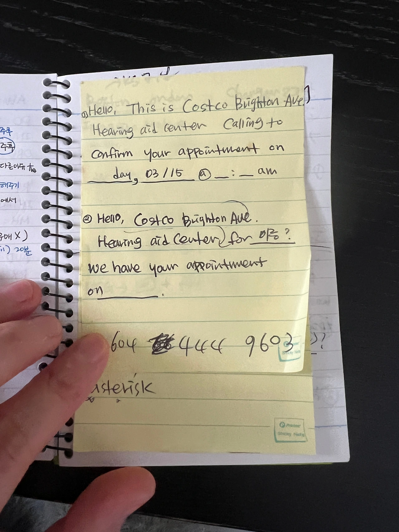 그래서 처음에는 인콜전화는 응대하지 않았다. 아직까지는 고객들의 질문을 응대하기에는 hearing aid에 대한 충분한 지식이 없었기에 다른 직원들이 응대하는 것을 보면서 조금씩 정보를 축적해 나아갔다. 그동안에는 예약확인 전화를 먼저 시작했다. 아무래도 상대방에게 확인만 받으면 되기 때문에 심리적으로도 부담이 덜 가는 업무였다. 그렇게 2주 동안 confirmation call을 돌리다 보니 전화업무에 대한 자신감이 생기기 시작했다. 중간중간 스몰토크도 오가면서 통화를 하다 보니 자연스럽게 인콜 또한 받기 시작했다. 대부분 질문보다는 예약을 하려는 고객들의 전화가 많기에 생각했던 것보다는 어렵지 않았다.
