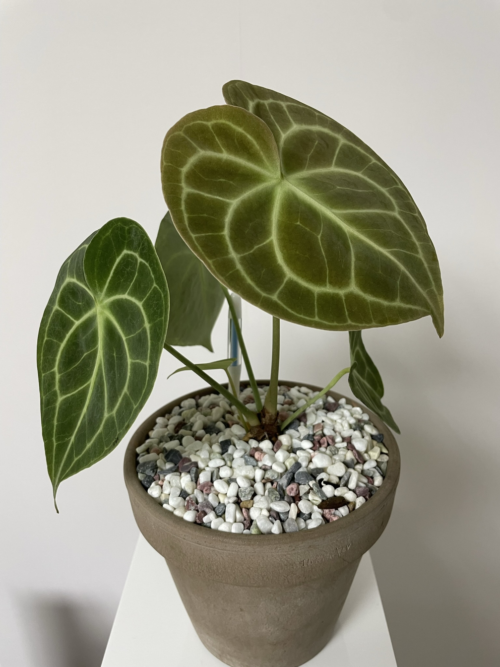 그런데 날씨가 추워지면서 한 온라인몰에 특가로 이 식물이 올라온 것이다. 이정도 크기면 죽이지 않겠지? 하는 큼지막한 것으로. 안스리움들은 그래도 가격이 비싸다보니 화원에서 파는 일반 모종 정도의 세나 크기를 아득히 벗어난 유치원생… 어린이… 아기 수준의 유묘를 파는 경우가 잦다. 안스리움 원종 및 교배종들은 식물 매니아들이 주로 구입하는 품종이다보니 미래에 대한 희망과 키우기 스킬에 대한 자신감이 넘치는 나머지 이것을 대품까지 키우고 말리라…! 하면서 3-5만원 정도에 말그대로 새싹 수준의 개체들을 사고 판다. 그런데 나는 가성비충이라 그 가격에 죽을 확률이 높은 개체를 사고 싶지 않았다.
