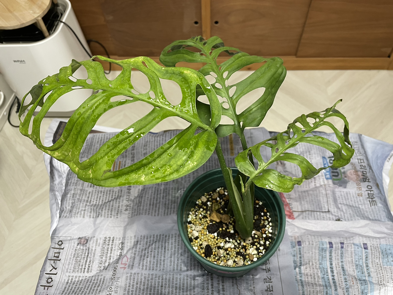 처음에는 아단소니류로 상징되는 구멍난 몬스테라들이 좀 징그러웠지만, 아무래도 식물이 여러 개 있는 공간에서는 찢어진 큰 잎보다 구멍난 잎이 조화로워보인달까 하는 느낌이 있다. 몬스테라류가 대체로 예쁘지만, 한국 가정 환경에서는 아주 여러 가지 종류가 최종적으로 공존하기는 어려워서 아쉽다.