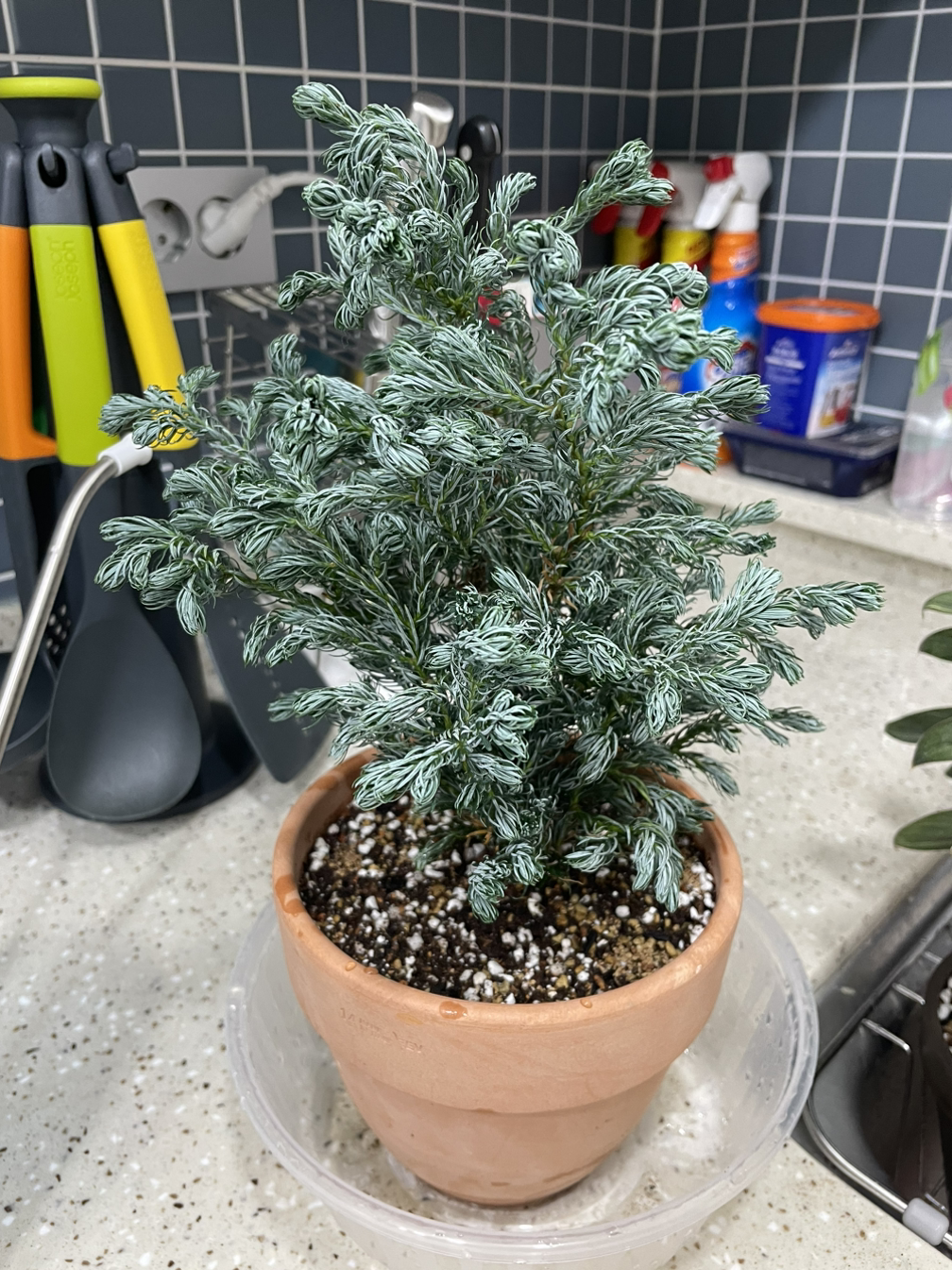 크리스마스 트리라는 본분을 마치고도 집에서 무난무난하게 살고 있다. 보통 침엽수들은 빛과 통풍을 열대 그늘 출신 실내식물보다 더 요구하는 경우가 많다. 이들은 온대 기후에서 가장 키가 큰 식물이기 때문이다. 크리스마스 트리로 하고 싶다고 약간 가벼운 마음으로 사면서도 습도가 높고 통풍이 좋지 않은 실내에서 살아남을까, 싶었지만 어찌저찌 잘 살아있고 봄 버프를 받으며 그럭저럭 성장도 했다. 장마철을 넘길 수 있을까가 관건이겠다.