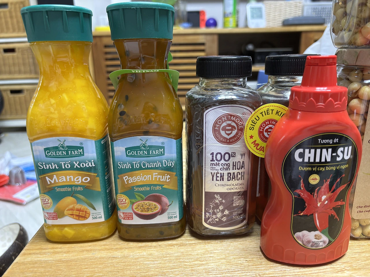 얼죽아의 민족이라 나도 식후 물 대신 냉침차를 먹는 습관이 있는데 co thu차도 shan tuyet차도 그럭저럭 마실만 했다. 그리고 2년이 지났으니 요즘 한국인 여행자가 모두 사오는 다낭템에 약간 변화가 생겼는데, 사진 왼쪽의 망고와 패션프루트 청을 사오는 게 유행이다. 옆을 잘 살펴보니 얼음 2/3컵, 청 두숟갈…? 정도에 녹차를 부어 섞는 레시피가 있어서 따라해봤더니 제법 베트남 카페음료같고 맛있었다. 단순한 맛에 약간의 레이어가 생겨서 그런 듯 하다. 하지만 먹짱 반려인이 탄산수에 타먹는 걸 좋아해서 망고는 한컵 타먹으니 있었는데 없었습니다. 패션프룻보다는 망고가 좀더 차와의 궁합이 좋은 듯 하다.