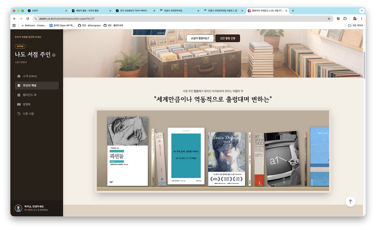 알라딘 나도 서점주인 https://www.aladin.co.kr/mybookshop/curator.aspx?id=37