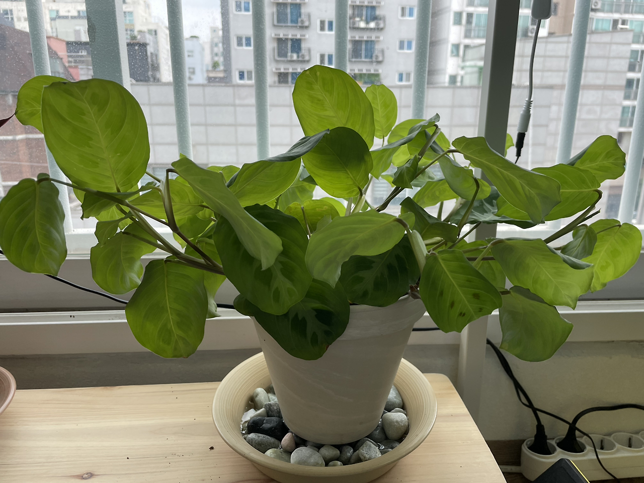 화원이 많은 식덕의 동네 일산으로 이사한 드루이드 친구의 집에 가자마자 거대한 마란타 화분이 꺼내졌다. 이렇게 생긴 식물을 처음 봐서 놀랐고 너무 커서 놀랐다.