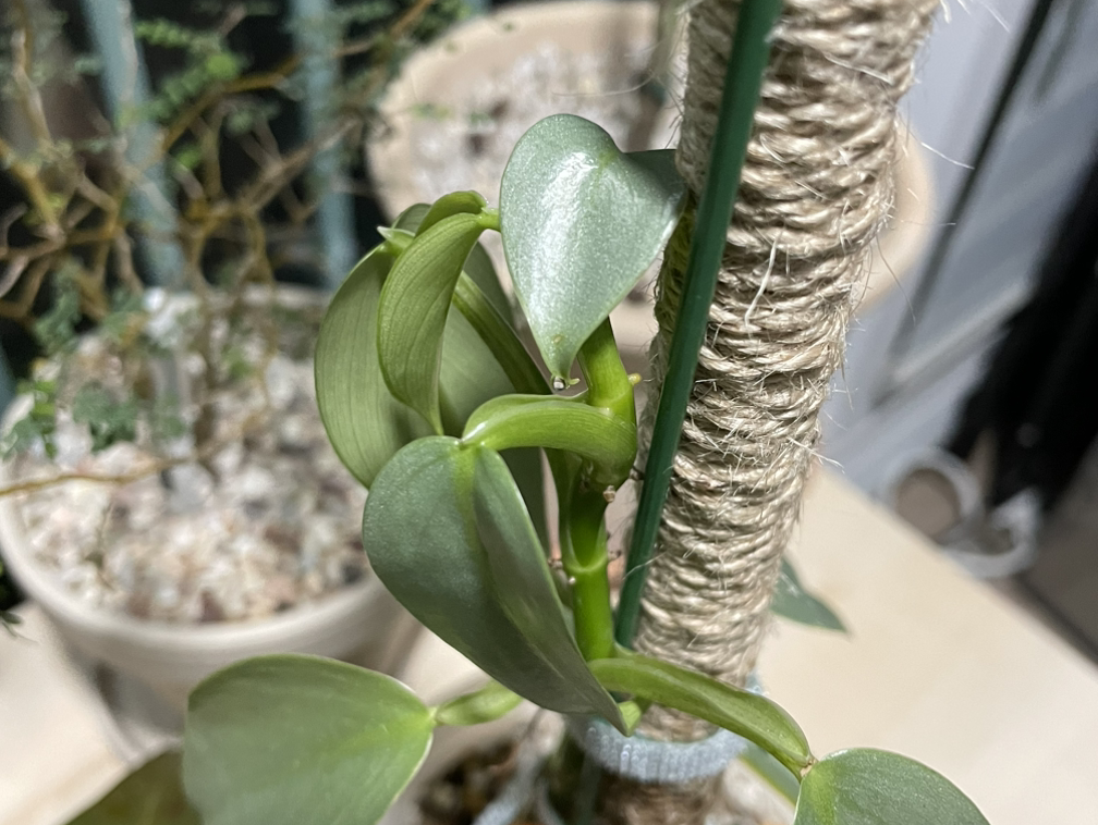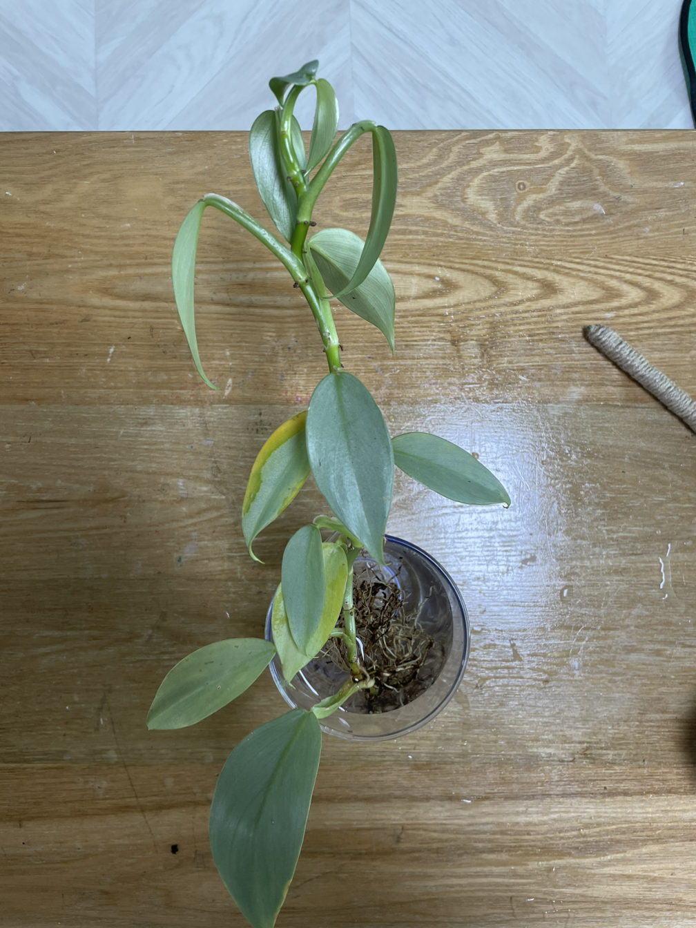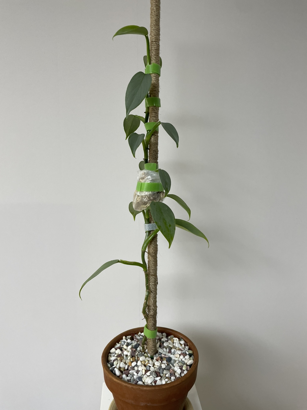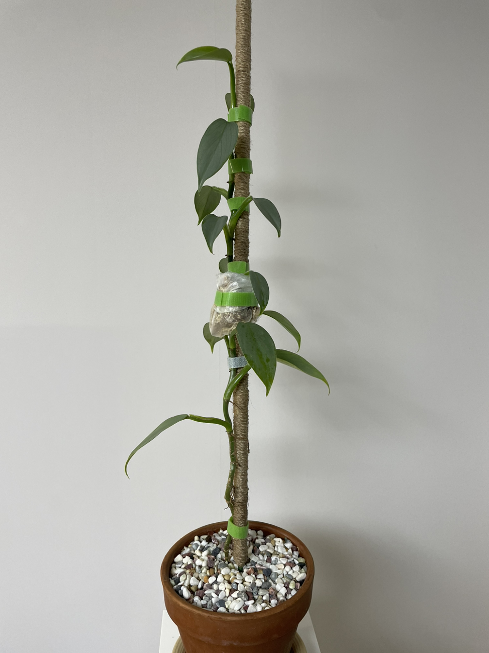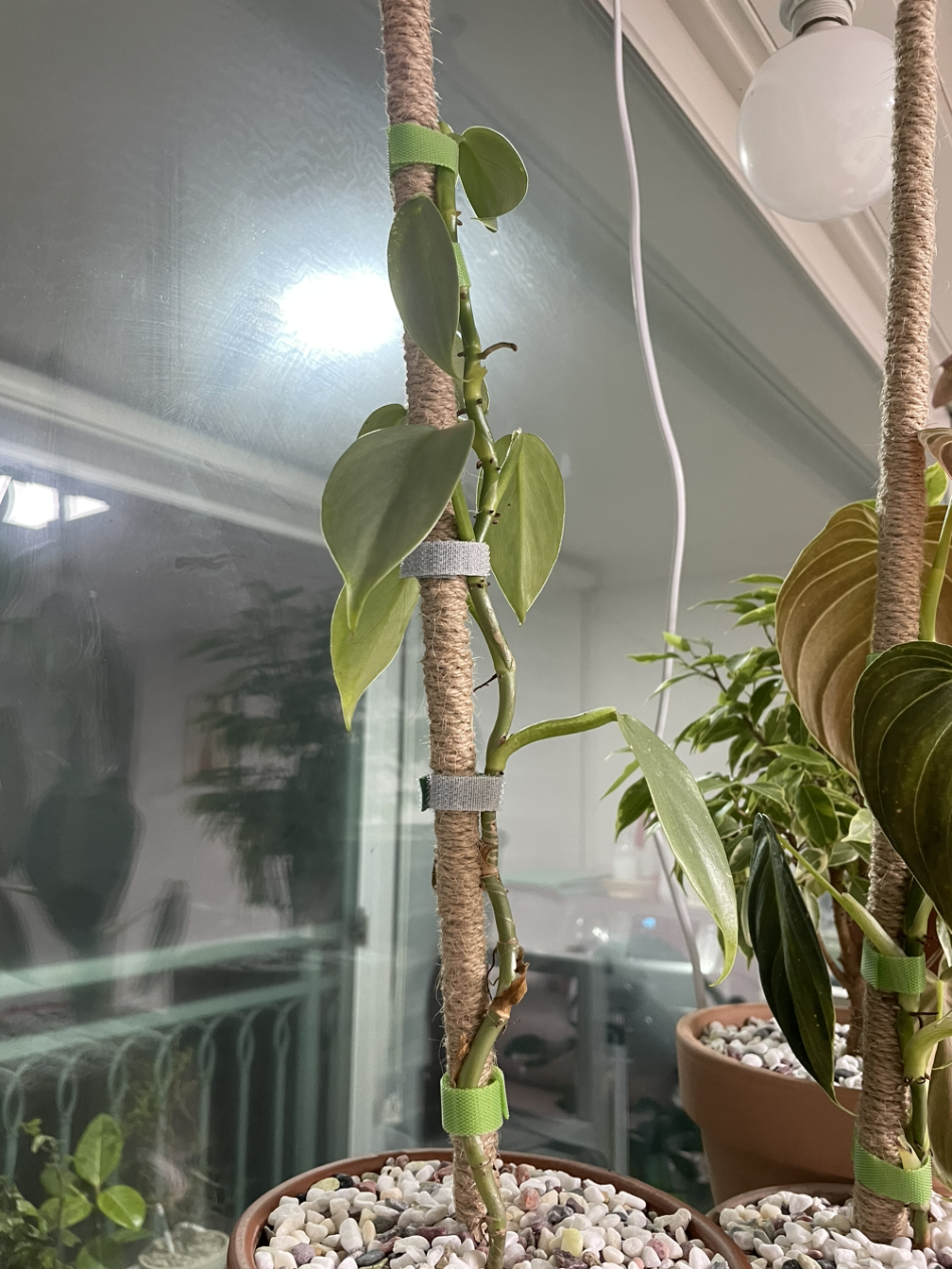 며칠쯤 냅뒀더니 새로운 뿌리가 그럭저럭 잘 자라는 것 같아 한사이즈 작은 13cm 토분에 심어주고 지지대의 길이도 현실적으로 조절하였다.