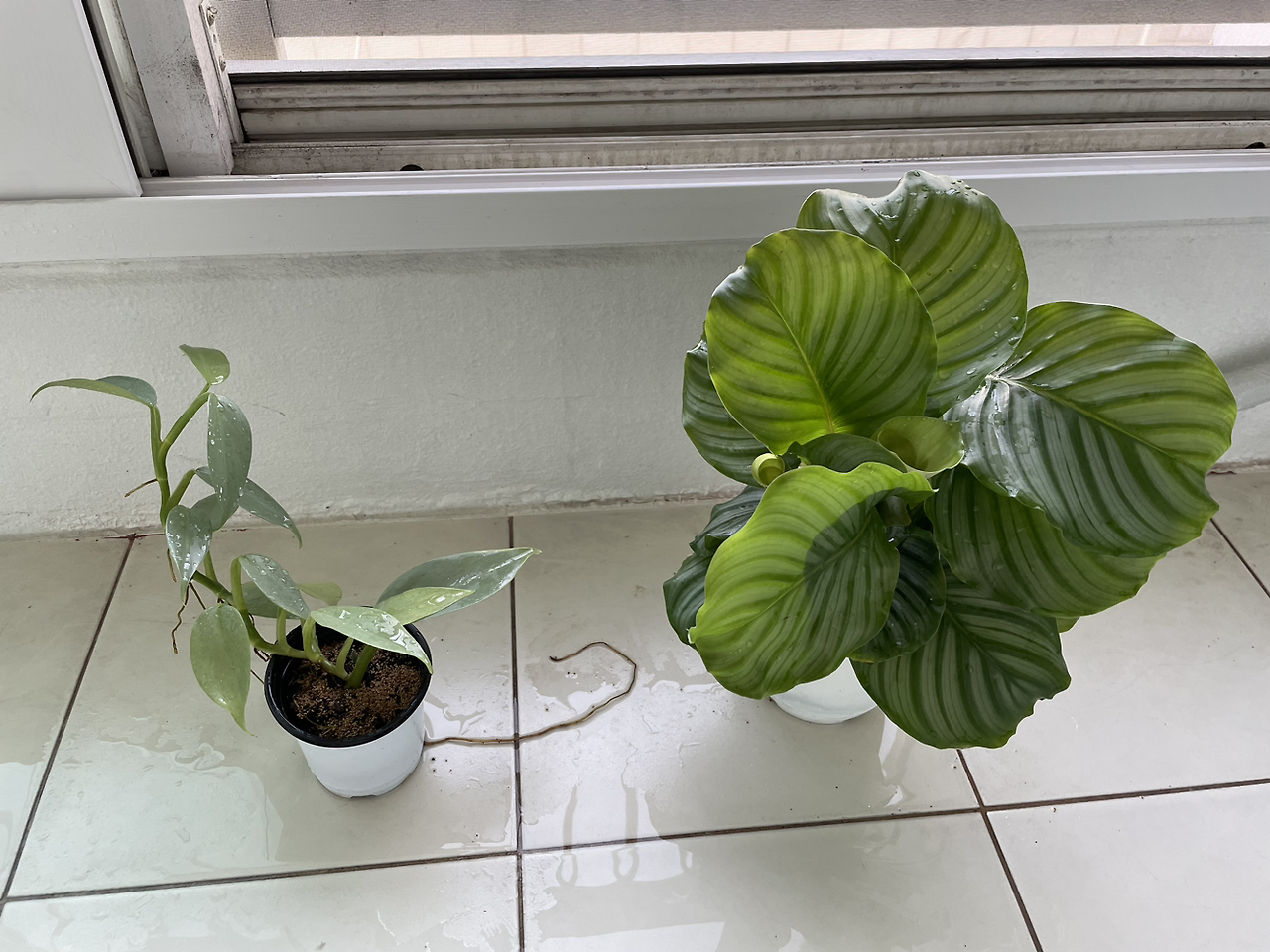 식물을 조금 많이(40-50개쯤) 기르게 되면서, 좀 못생긴 상태가 되면, 안 보이는 구석자리로 미루고 관심을 줄이는 방법을 사용할 수 있게 되었다. 그런 이유로 해와 식물등이 잘 드는 자리부터 칼라데아 존까지 여기저기 이동해봤지만 아직 딱 좋아하는 광량은 못 찾았다. 직사광선을 피하고(우리집에 그정도로 빛이 짱짱한 공간 없음) 창문을 통과한 빛으로 기를 수 있다…. 면 거의 경험적 정보치가 없는 수준인데?