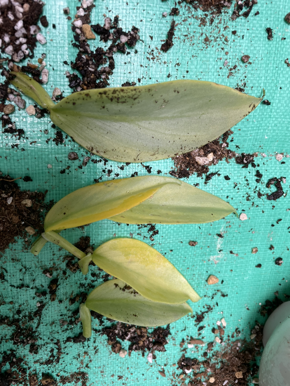 한 2-3주가 지났을까… 새순이 나기 시작했다. 나름의 과습 처치가 먹혔나보다. 하지만 물을 준 직후부터 물이 완전히 마를 때까지는 가장 아랫쪽 잎 서너 장 정도는 얼룩덜룩해진다. 처음에는 그렇다고 이것까지 자르면 광합성을 못할까봐 안 잘랐고, 지금은 수분 측정계 용도로 확인하고 있다.(아랫잎에 얼룩이 없어지면 준다.)