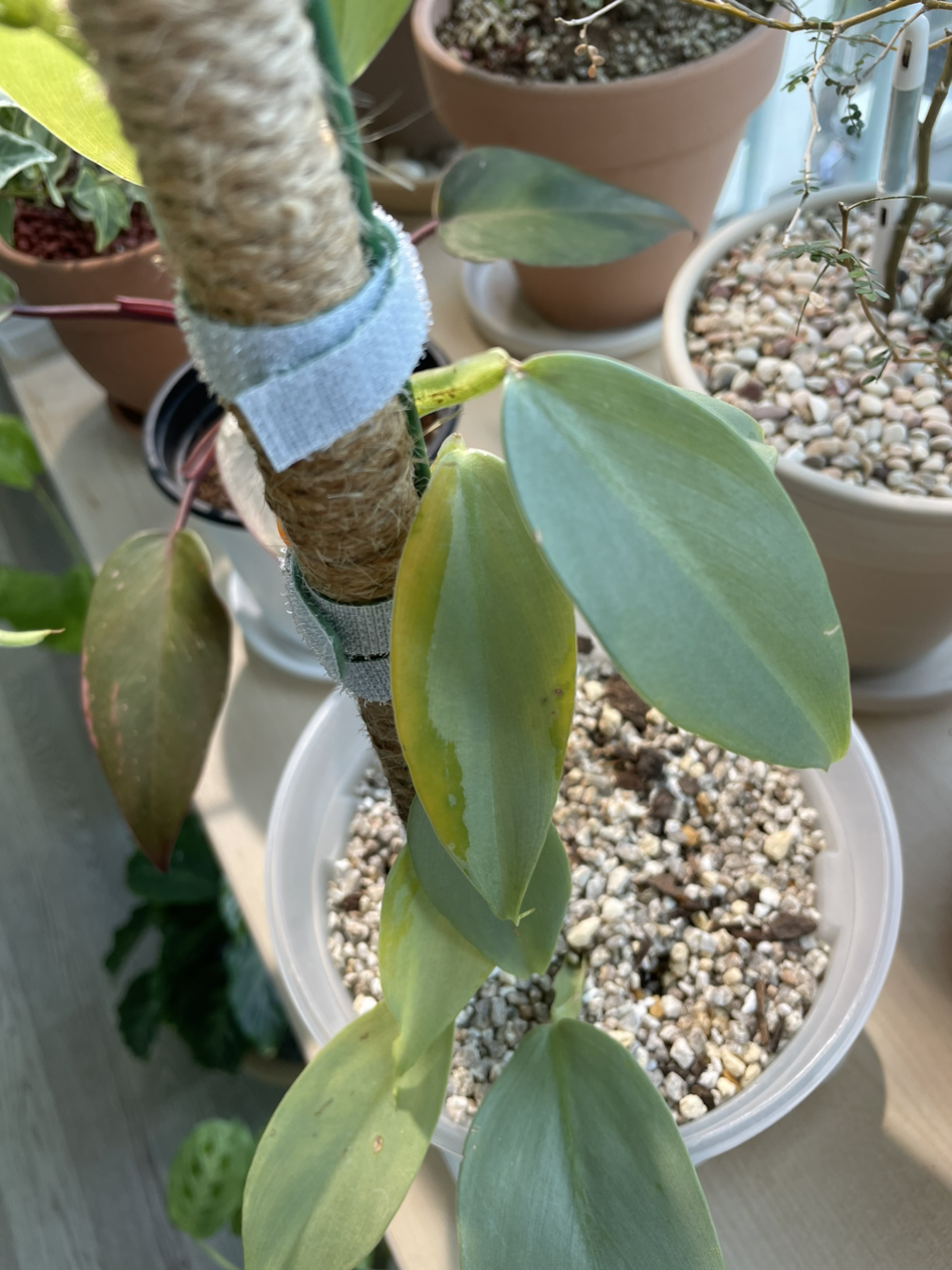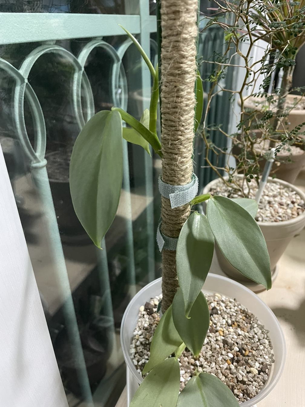 하지만 아직도 나는… 얘가 좋아하는 광량을 잘 모르겠다. 뿌리는 과습으로 한 번 썩었다. 6개월간 새 잎은 8장쯤 난 것 같지만 전부 사마귀 모양의 뾰족잎으로, 심지어 처음 맨 밑에 있던 잎보다 좀 작다. 결국 점점 허리가 긴 은청색 사마귀 모양… 비슷한 것이 되어가고 있다. 아마 젖은 것을 관리하기 너무 싫어하기 때문에 지지봉으로 수태만큼은 지양하고 있기 때문일 지도 모른다.(식물 sbn님들 말로는 필로덴드론속 식물들은 줄기에 붙은 공중뿌리를 늘 젖은 상태로 지지대에 활착시켜줘야 잎이 빨리 커진다고 한다) 하지만 곰팡이… 곰팡이만큼은 너무 귀찮고 싫은 나머지 수태봉만큼은 최후의 선택지로 미뤄두고 있다.