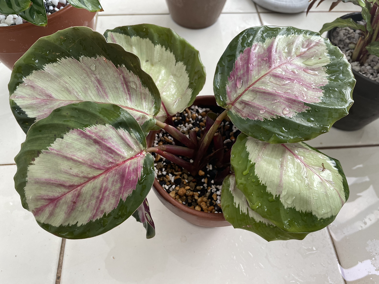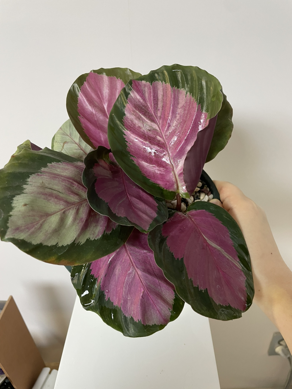 하지만 사고 나니 온라인 사람들이 “아 이거 두개 사면 둘중에 하나는 살아남을지도 모르니까” 라던가 “작년에 샀는데 또산다” 라고 하는 게 그제야 눈에 띄었다. 실제로 키워보니 그만큼 까탈스럽기도 하다. 로제오픽타류(메달리온, 일러스트리스, 로시, 도티 등)가 다른 칼라데아 친구들보다 빛의 양 변화에 예민하고, 뿌리 과습과 잎 상하는 현상이 잦은 느낌이고, 화려할 수록 더 예민하다.