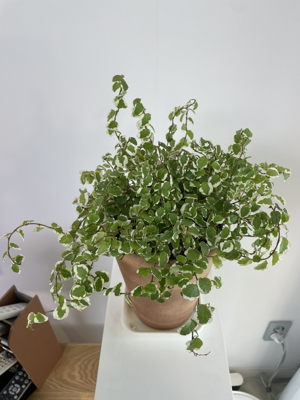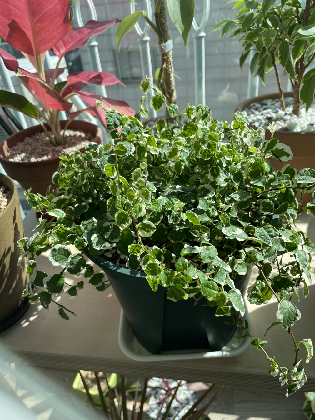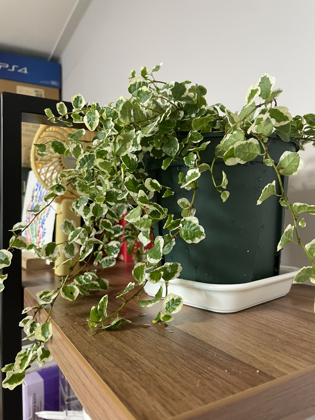 여름부터 광인이 된 내 경험에 의하면, 작년 여름 화원에 러브체인을 안 파는 곳은 있어도 푸밀라를 안 파는 곳은 없었다. 가장자리의 불규칙한 흰색 테두리와 초록한 연두색이 어우러진 상큼한 이 덩굴식물은 놀랍게도 고무나무의 일종이다.(벵갈, 떡갈이랑 친척이라니!) 그래서 가지를 치면 약간의 고무수액이 흘러나온다. 돌보기도 쉬운 편으로, 인간조차 바삭해질 정도의 공중습도만 지양하고 물만 좀 자주 챙겨주면 된다. 까탈왕 물돼지 칼라데아나 오리발시계초 님들보다는 그래도 많이 잡수시는 편까지는 아니지만, 친척 고무나무류보다는 습도와 물을 좋아하는 편이다.