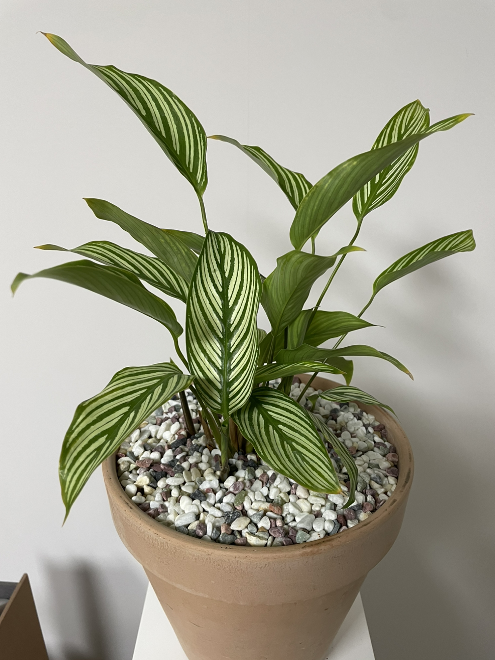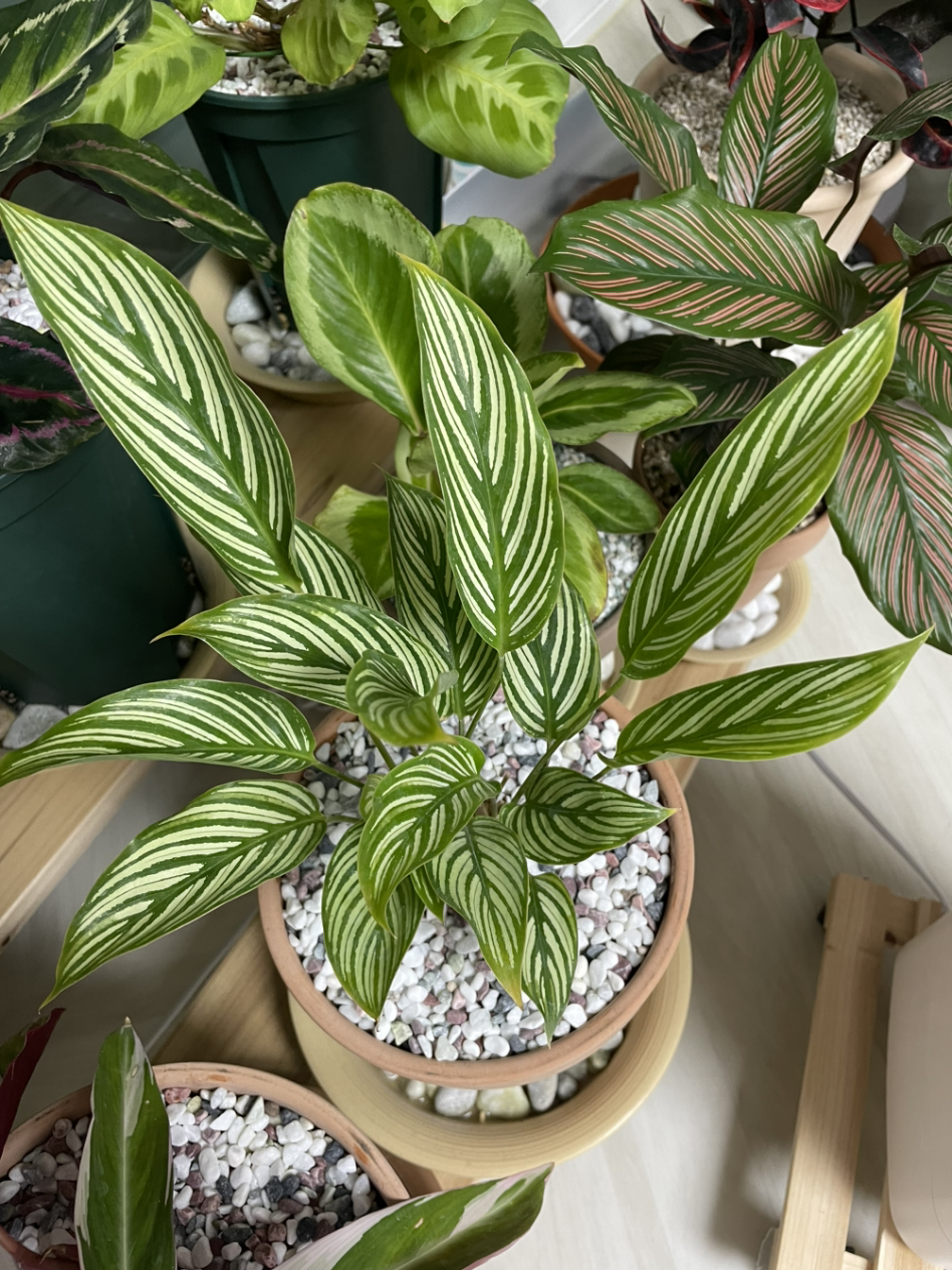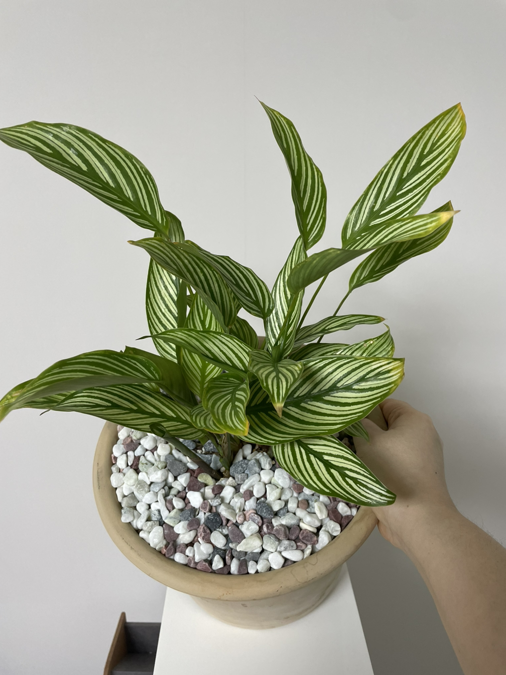 상큼한 흰색 스트라이프 무늬를 가진 칼라데아 비타타. 큰 고민하지 않고 예쁜 칼라데아라 샀다. 기르면서도 큰 문제는 없었고 다만 뿌탈을 자주하는 칼라데아로 기억에 남아 있다. 뿌리가 얼마나 무식하게 크게 자라던지, 10센티 모종에 들어있던 친구가 6개월만에 23센티 화분으로 이동해 있다.(인간적으로 여름까지는 여기서 살아야 하지 않을까?)