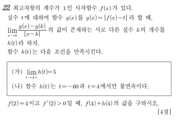 공통 과목 중에서 가장 까다롭게 출제되는 22번 문항 중 하나에 해당하죠.