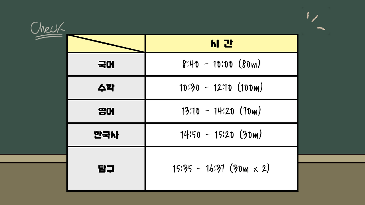 혹은, 다음 시간에 풀 탐구 과목에 대해 미리 머릿속으로 준비해두는 친구들도 많습니다.