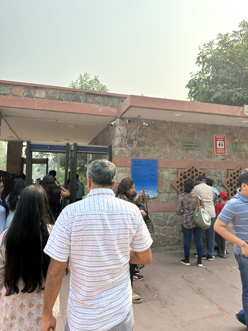 후마윤의 무덤을 들어가기 위해서는 티켓을 구매해야 합니다. 인도답게 외국인은 바가지요금을 감수해야 합니다. 내국인은 40루피이지만 외국인은 무려 15배인 600루피를 내야 합니다. 우리 돈으로 1만 원쯤 하니 부담스러워서 못 들어갈 정도는 아니지만 차별 대우를 받는 느낌은 썩 달갑지 않습니다. 입장료를 지불하면 동전 모양의 입장권을 받는데, 입구에서 동전을 태그 하면 문이 열립니다. 간단한 몸수색을 하고 입구를 통과하면 드디어 후마윤의 무덤에 입장할 수 있습니다.