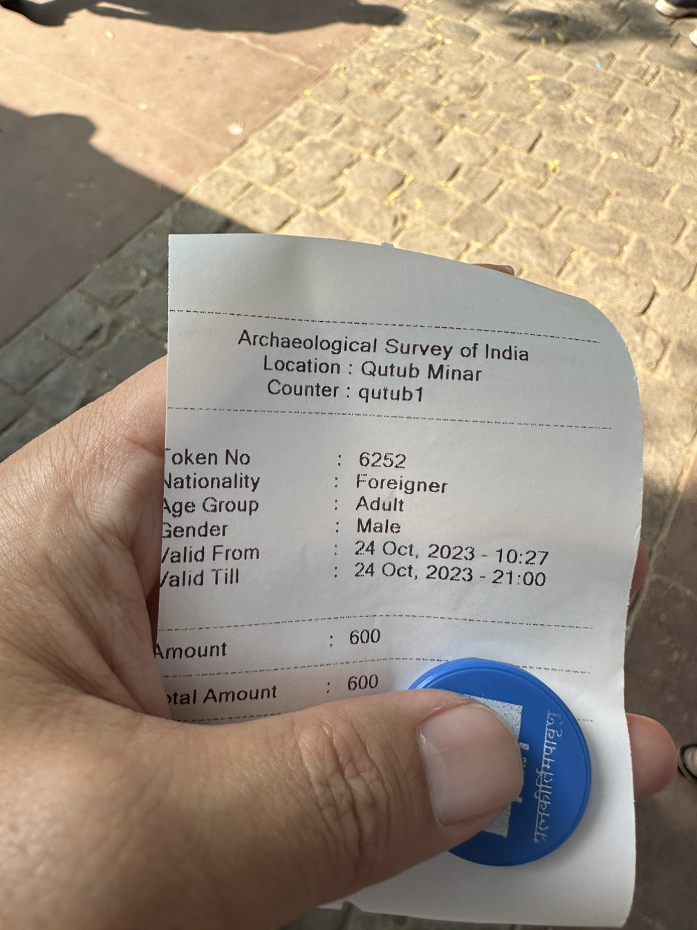꾸뜹 미나르에 입장하기 위해서는 티겟 판매소에서 입장권을 구매해야 합니다. 외국인에 대한 바가지요금은 여전합니다. 600루피를 지불하고 입장권을 구매하고 꾸뜹 미나르의 입구로 향합니다. 간단한 몸수색을 마치고 입구를 통과하는데 인도인 한 명이 앞을 가로막습니다. 인도인의 입에서 어눌한 한국말이 나옵니다.