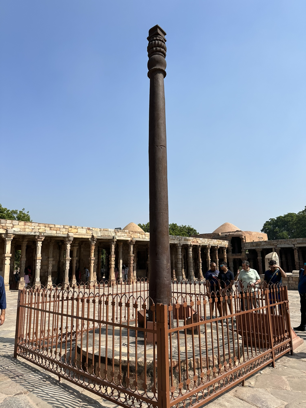 사원 앞에 있는 광장의 가운데에는 10여 미터 길이의 철기둥이 바닥에 서있습니다. 철기둥을 보니 처음 이곳에 왔었던 과거의 기억이 떠오릅니다. 당시에 인도인들은 철기둥을 등지고 양팔을 뒤로해서 깍지를 끼는 자세로 철기둥을 안고 있었습니다. 주위의 인도인들은 저도 동일한 포즈를 취하라고 성화를 해대서 영문도 모르고 따라 했었습니다. 기둥에 깍지를 끼고 소원을 빌면 이루어진다는 미신 때문이었습니다. 당시에 무슨 소원을 빌었는지 기억을 할 수 없기에 실제로 효험이 있었는지는 확인할 길이 없습니다.