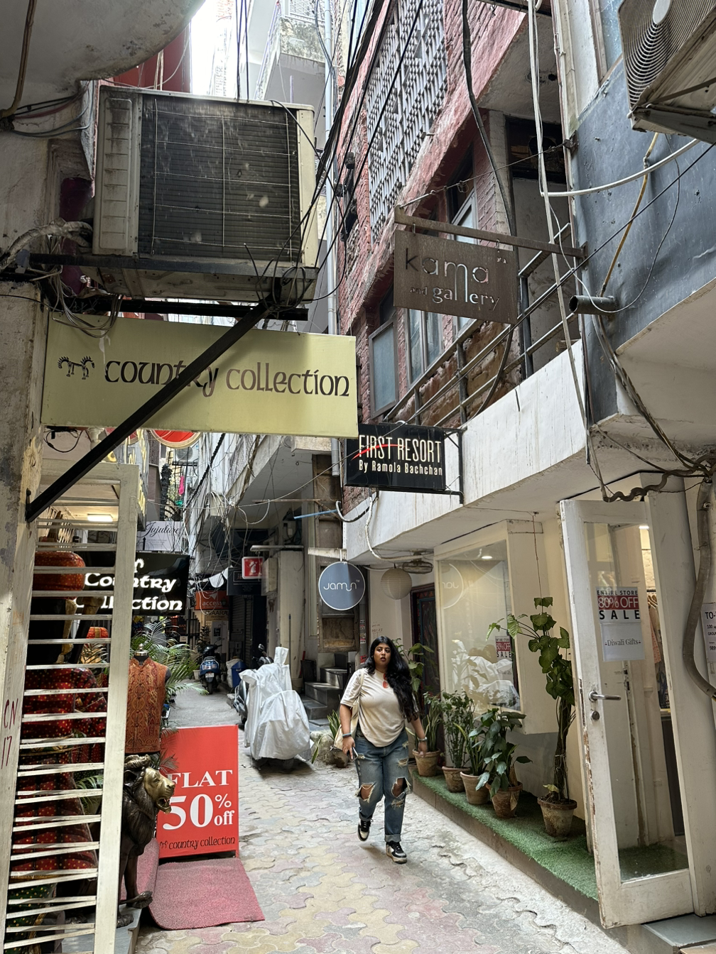 하우즈 카스의 골목길은 인도스럽지 않고 발리에 가깝습니다. 다소 낡고 정돈되지 않은 골목길은 트랜디한 분위기를 물씬 풍기고 있습니다. 어지럽게 얽혀있는 골목길 곳곳에는 특이한 물건을 파는 가게들이 즐비합니다. 쇼핑을 좋아하지 않아서 물건을 사지는 않았지만 아이 쇼핑만으로도 충분히 즐길 수 있습니다. 낡은 건물의 한쪽벽 전체가 화려한 그래피티로 가득차 있습니다. 우리나라로 치면 홍대앞 혹은 이태원 거리와 비슷합니다.