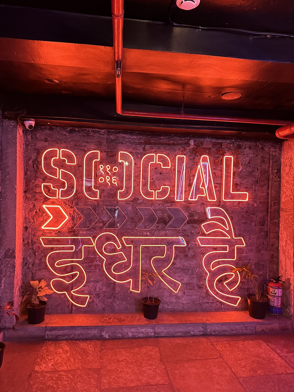 점심을 먹으러 방문한 식당의 이름은 하우즈 카스 소셜입니다. 입구는 조명이 없어서 어두컴컴합니다. 벽면 하나를 가득 채우고 있는 네온사인이 없었다면 들어가기 망설여질 정도입니다. 어두운 복도를 통과해서 문을 열고 들어가니 식당 안은 눈부실 정도로 환합니다. 식당은 정원 바로 옆에 있고, 정원쪽의 통창을 활짝 열어두어서 눈부신 자연광이 식당안을 밝히고 있습니다. 점심 식사를 먹기에는 다소 이른 시간이었지만 벌써 꽤많은 사람들이 앉아서 음식을 즐기고 있습니다. 저도 생맥주와 만두로 간단한 식사를 했습니다.