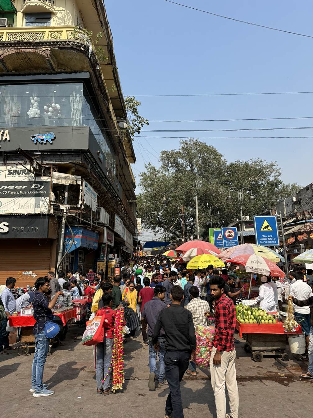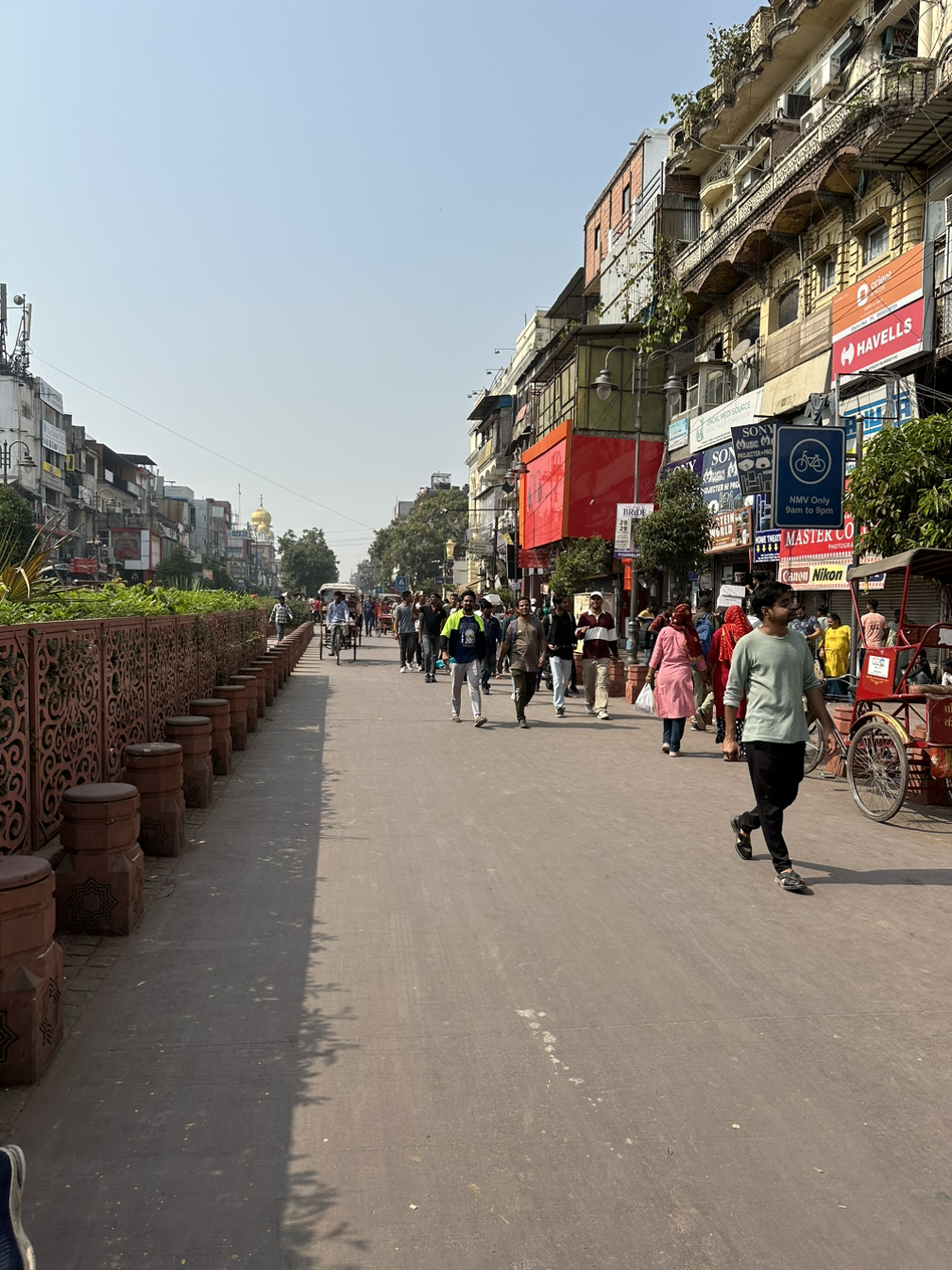 찬드니 초크는 레드포트의 건너편에 위치한 전통 시장입니다. 둘의 사이를 꽤나 큰 도로가 가로지르고 있는데 횡단보도를 찾기는 쉽지 않습니다. 눈치껏 현지인의 뒤에 바짝 붙어서 무단횡단을 했습니다.