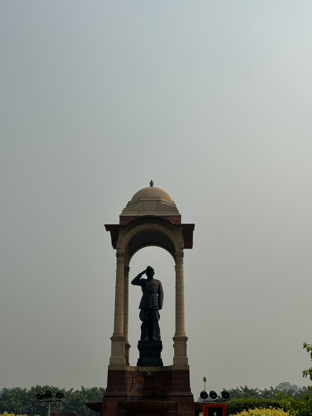 인디아 게이트 뒤로는 경례하는 사람의 모습이 보입니다. 인도의 독립영웅인 네타지 서바스 찬드라 보스라는 인물의 전신상입니다. 영국의 지배를 받았기에 영문도 모르고 남의 나라의 전쟁에 끌려가서 순국한 군인들과 독립 영웅이 있는 이곳은 인도가 자주적인 독립 국가라는 점을 상징하는 장소입니다. 하지만 숙연한 분위기는 찾아볼 수 없고 나들이 나온 수많은 인도인들로 북적일 뿐입니다.