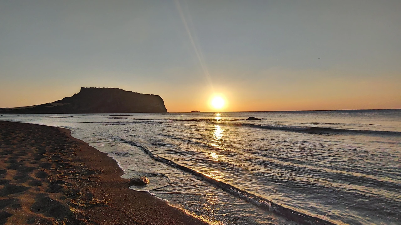 광치기 해변에서 본 성산일출봉 일출 사진 본인이 아침형 인간이라 생각한다면 동쪽에 숙소를 잡고 아침 일출을 감상하며, 커피 한잔의 여유를 즐겨보길 추천한다.