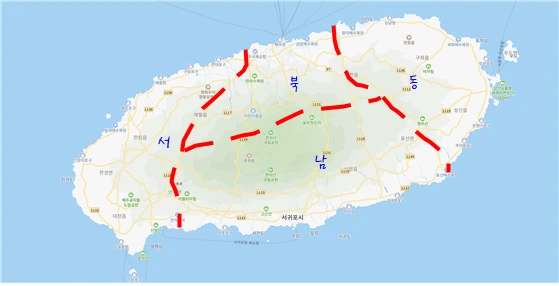내가 나누어 본 제주의 동서남북(네이버 지도 캡처 후 편집)