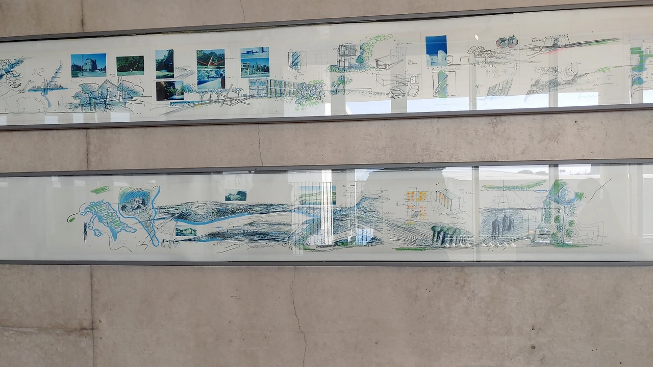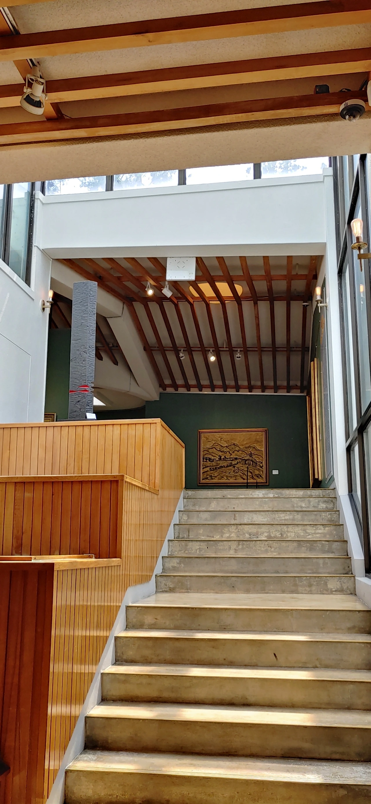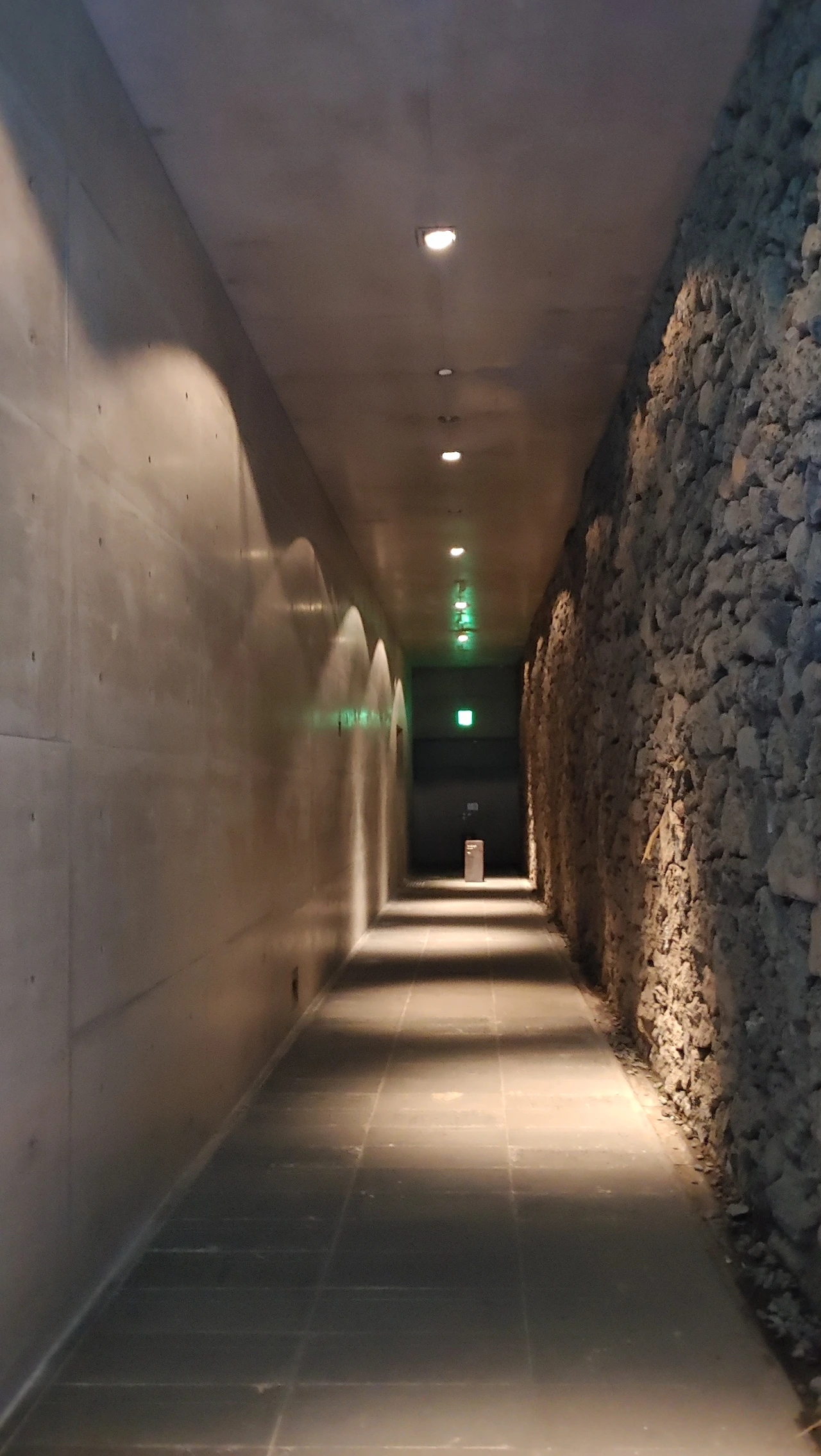 지그재그 모양의 램프를 따라 지하로 내려가면 전시실이 나오는데 땅속으로 내려 앉혀 지은 건물은 세한도와 닮으려 고민한 흔적이 아닐까 생각한다.