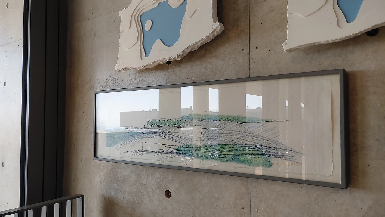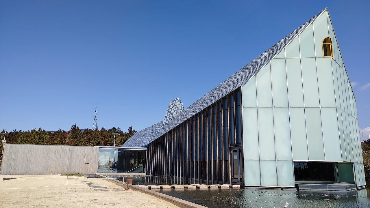 안도 다다오가 주로 많이 사용하는 노출 콘크리트의 무미건조한 선과 열려 있는 프레임에 자연을 담아 하나의 미술품으로 만들어내 사시사철 변하는 살아 있는 미술관이 되는 듯하다.