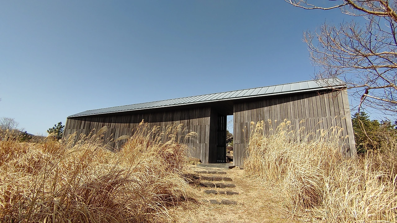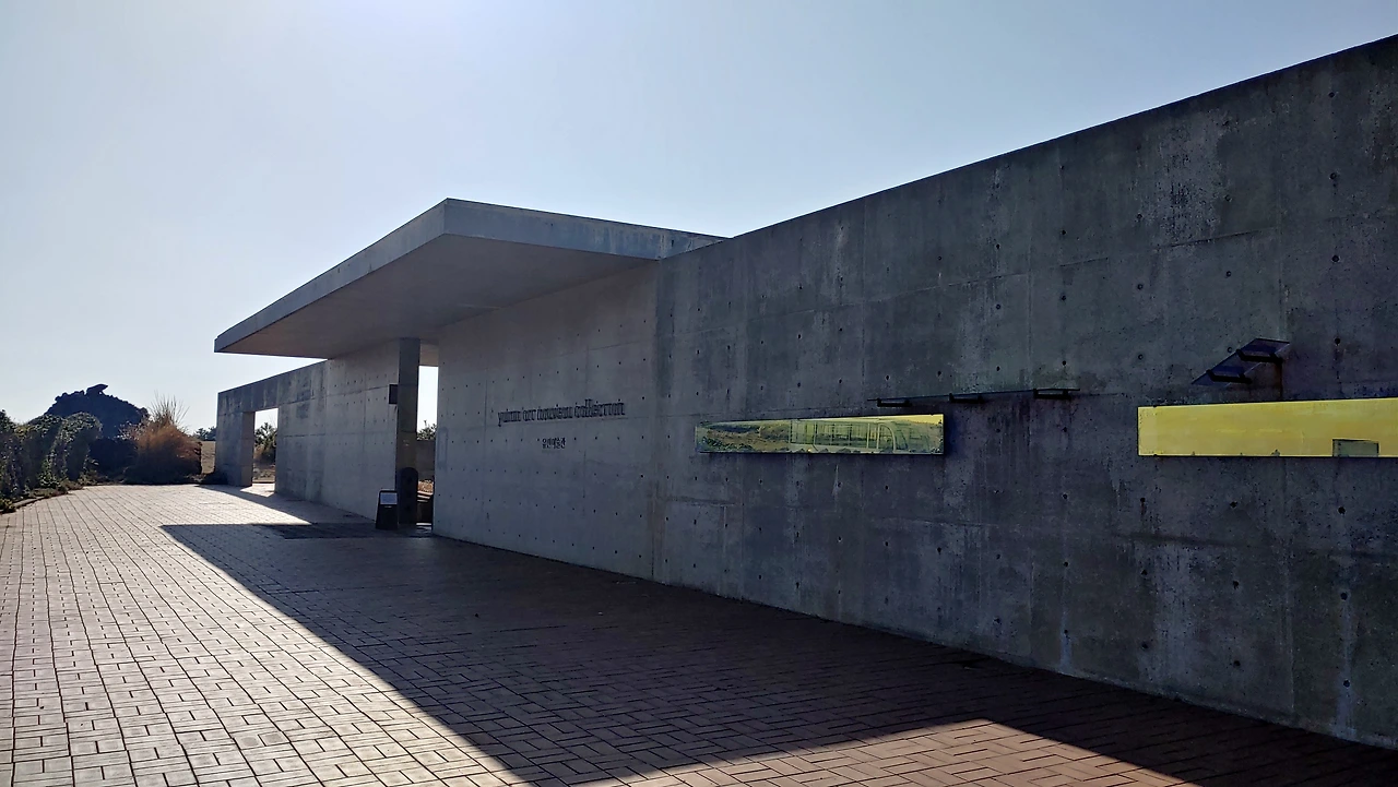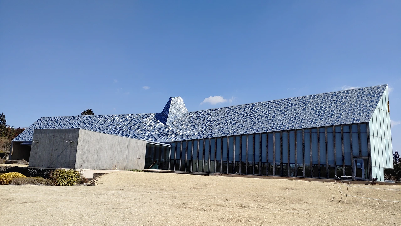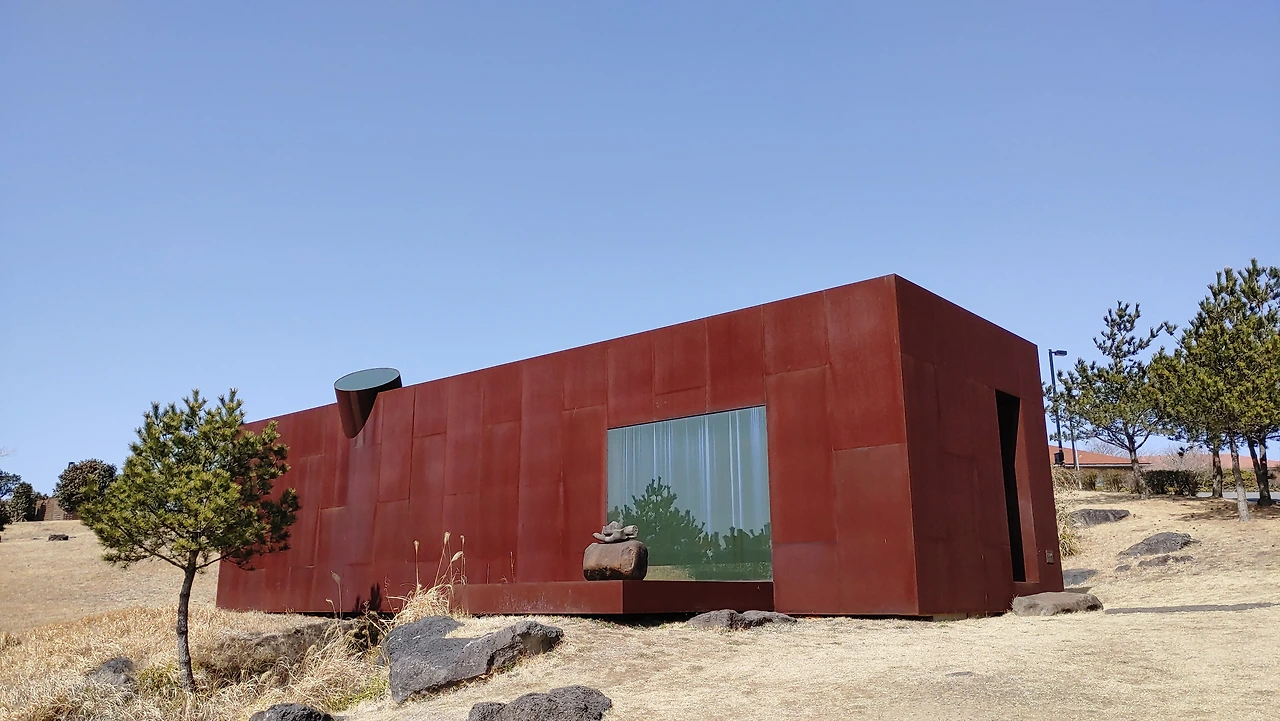 대지에 묻힌 유민 미술관 그런 섭지코지 해안 대지의 지형을 거스르지 않으려고 땅속으로 자리 잡은 건축물 유민 미술관은 건축가가 얼마나 자연을 미술관에 담으려 했는지 짐작할 수 있었고, 그런 이유로 처음 도착해서 잠시 미술관이 어디인지 찾지 못해 어리둥절함을 느끼기도 했다.