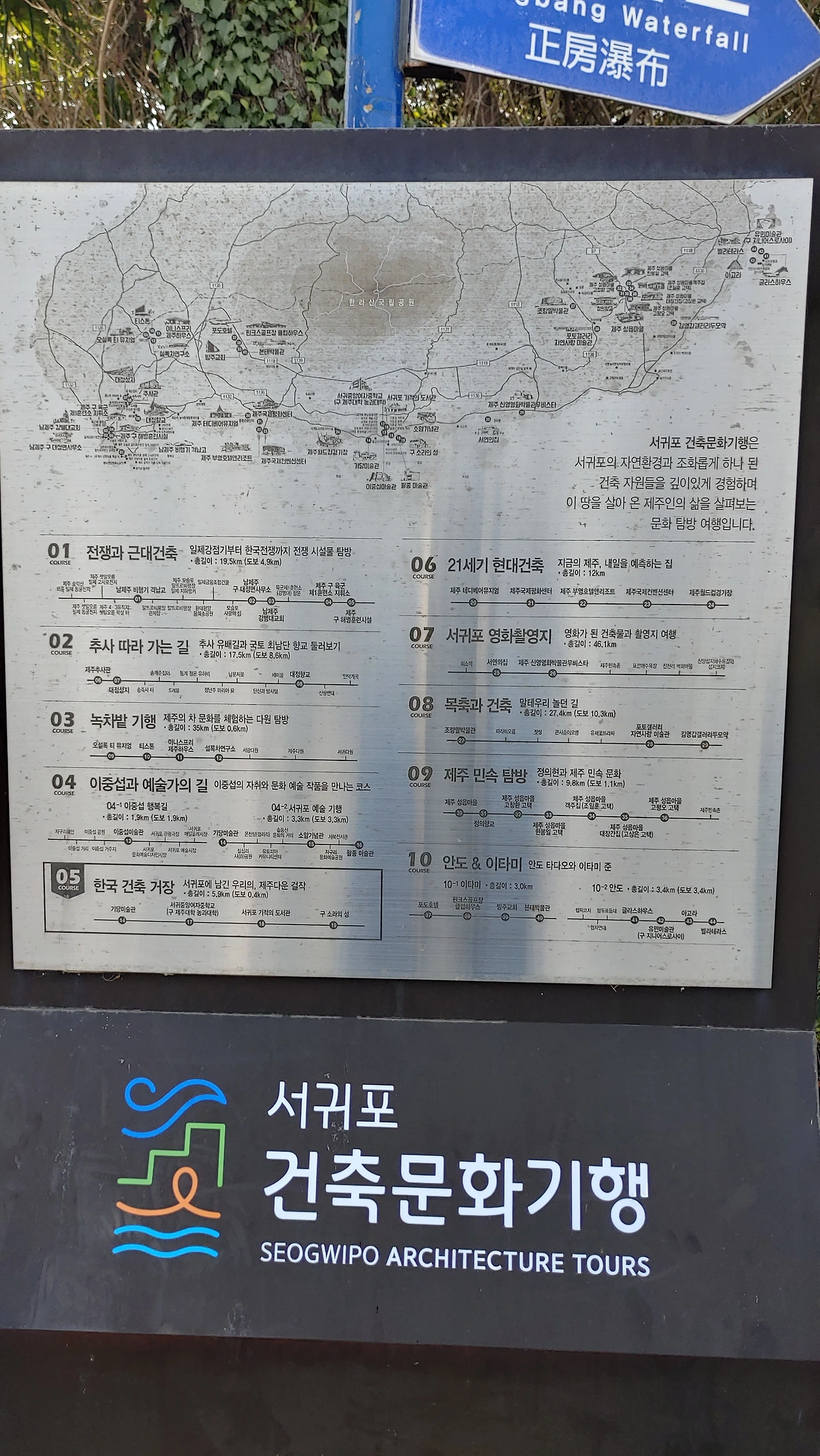 앞선 8화에서 이야기했듯이 나의 관심 분야에 따라 제주 건축기행을 해보고 싶다 생각을 하던 중 우연히 정방폭포 주차장에 있는 건축문화기행 안내판을 보게 되었다.