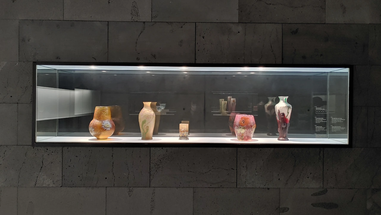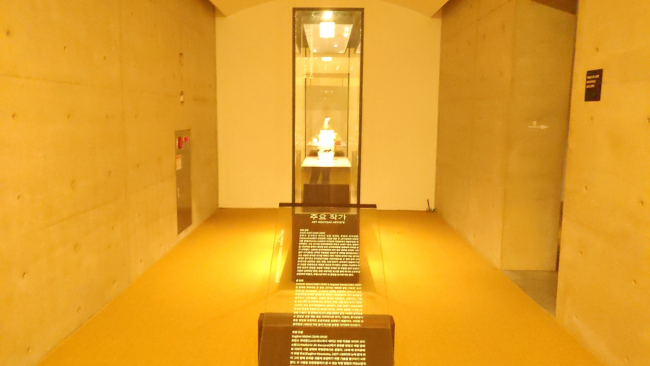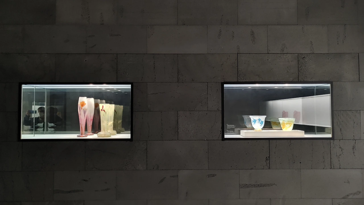이렇게 다채롭게 분리된 공간은 1890년대부터 약 20년간 유럽 전역에서 일어났던 공예 디자인 운동인 아르누보의 유리공예 작품을 다양한 주제로 전시하고 있었다.