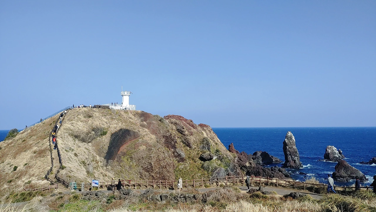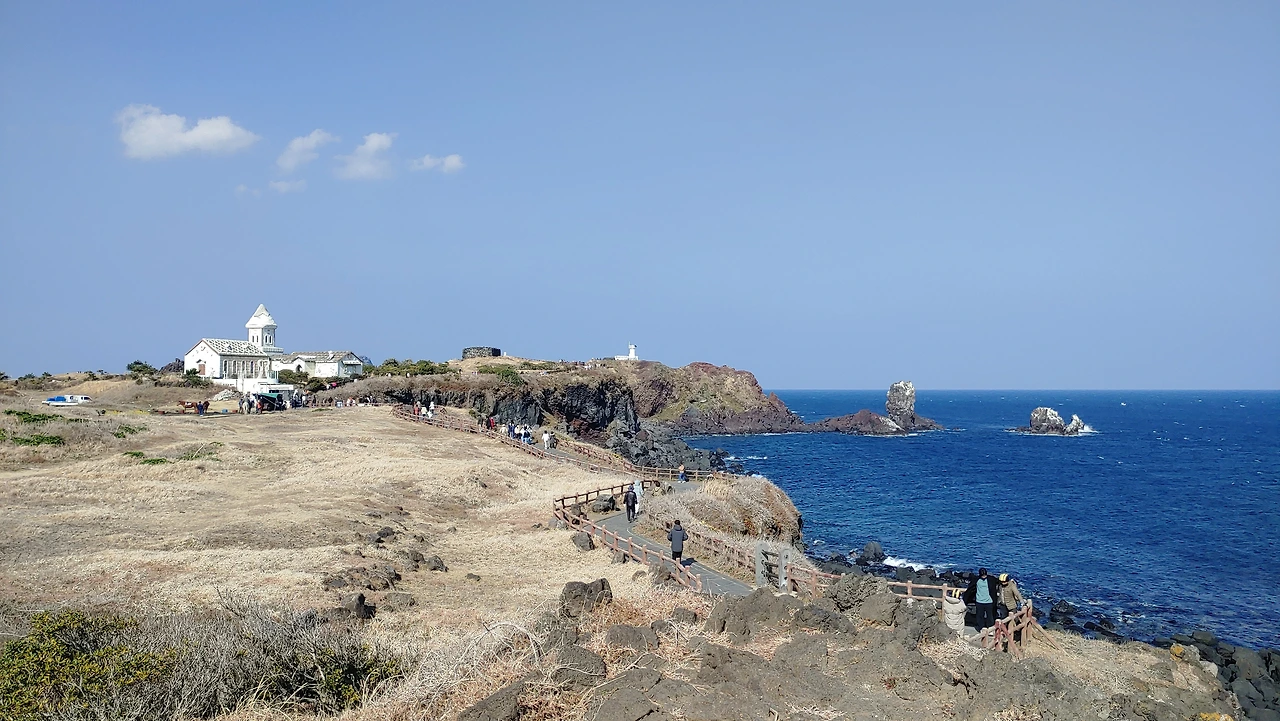 섭지코지 주차장에 차를 세우고 해안산책로를 따라 걷다 보면 깎아지른 절벽과 바다, 언덕 위 넓은 초지의 수려한 풍광에 가슴은 환하게 열리고 눈은 휘둥그레진다.