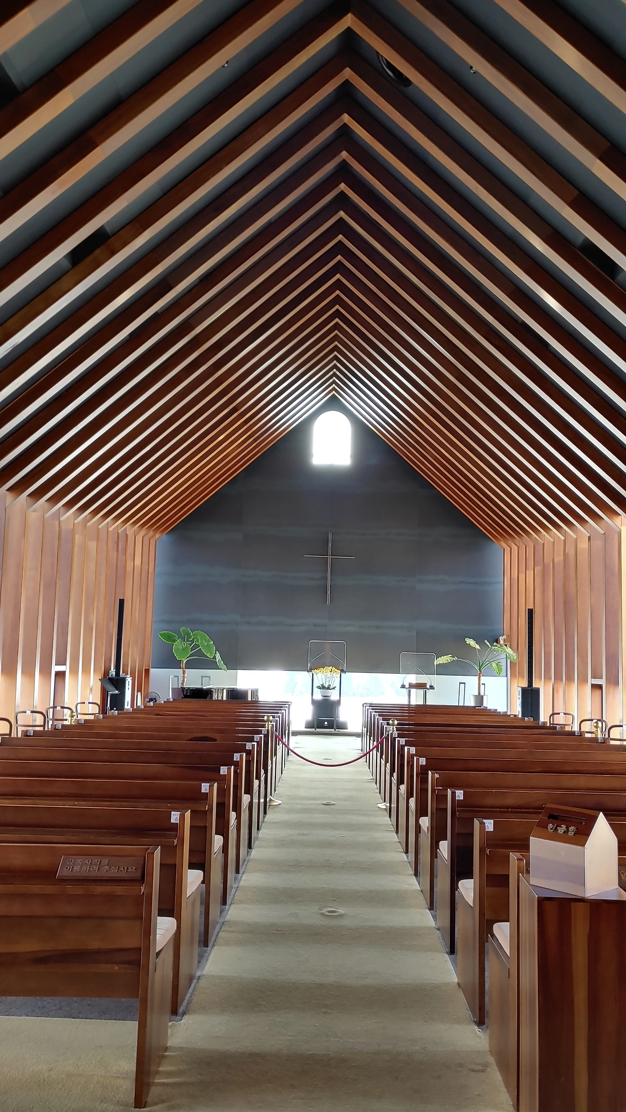 방주교회 측면과 지붕 이렇게 교회 건물의 외관은 신도들로 하여금 신앙심을 불러일으키기에 충분하지 않을까 생각되고 종교건축으로의 의미가 남다르다는 생각을 해본다.