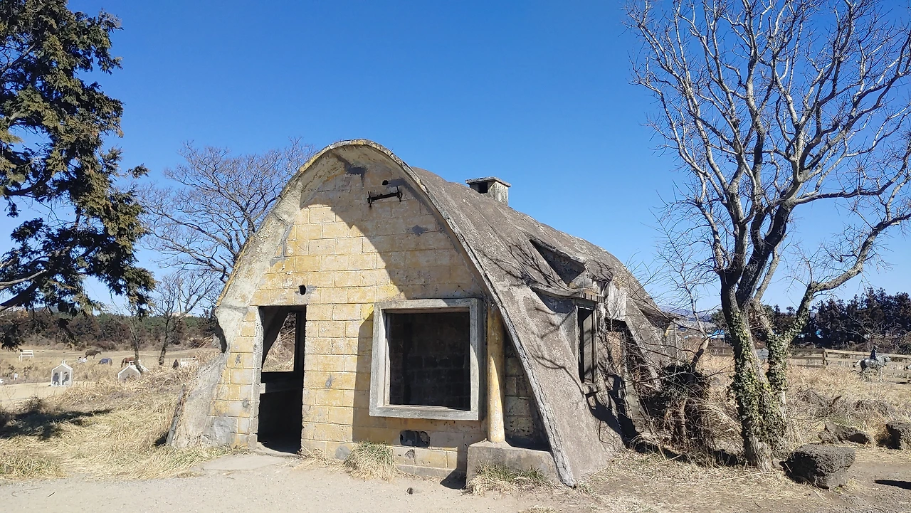 내부에 기둥이 없어 공간을 넓게 활용할 수 있고, 바람이 많은 제주에 적합한 형태의 건축이었다.