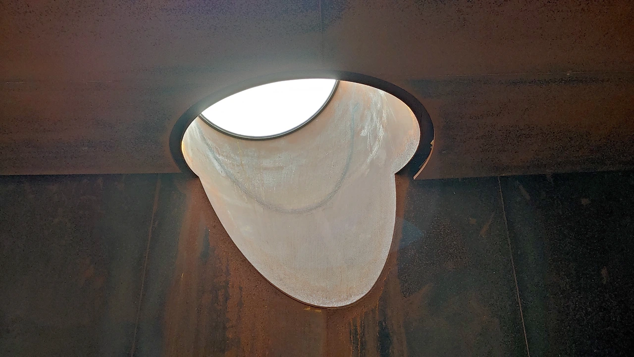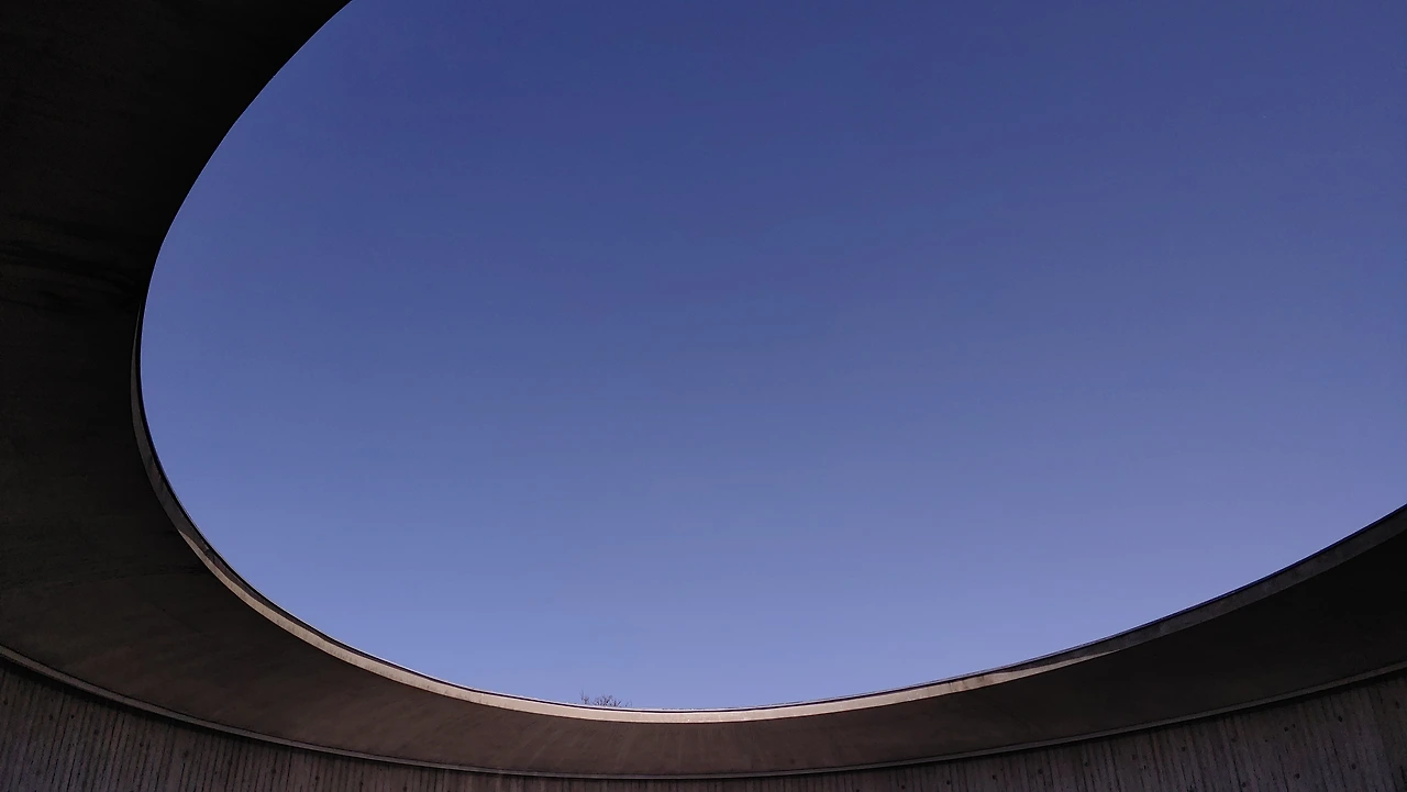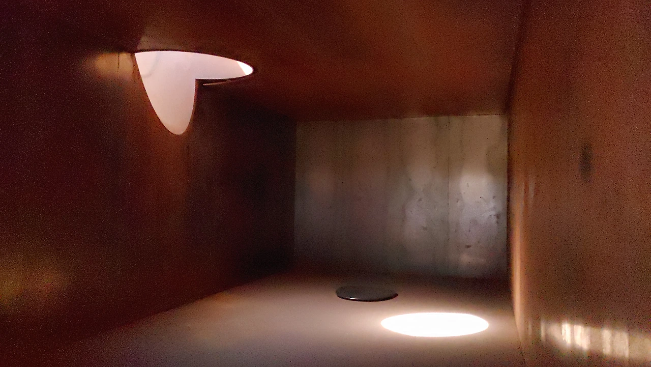 풍 박물관 내부 마지막으로 수 박물관으로 이동을 해 만난 건물의 외관은 해설사가 마지막에야 건물 모습이 카메라를 형상화했다고 설명한다. 건축물은 하늘로 뚫린 동그란 렌즈 모양에 가이드의 설명에 따르면 물은 도화지라고 설명했지만 나의 생각에는 필름이 아닐까 생각하며 그곳에 하늘을 카메라로 찍어 놓은 듯했다.