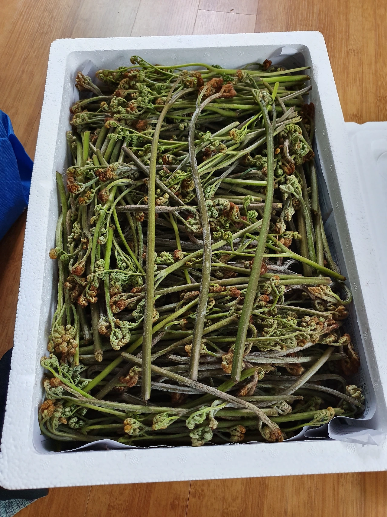 보통 고사리는 말린 건고사리를 보게 될 텐데 갓 끊어온 생 고사리를 삶아 찬 물에 씻어 내어 물기를 뺀 다음 그대로 냉동실에 얼려 두었다가, 하나씩 꺼내 삼겹살 굽는 불판 아래 두어 돼지기름 머금은 고사리로 먹거나 또는, 고등어조림에 넣어 칼칼한 국물을 머금은 생 고사리의 맛은 먹어 보지 않으면 모를 테다.