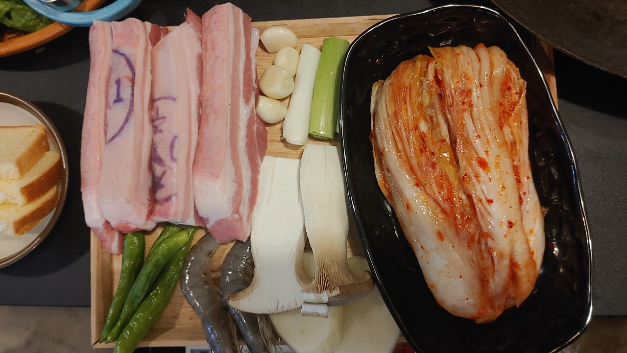 색달 돈솔 짜투리 구이와 김치찌개
