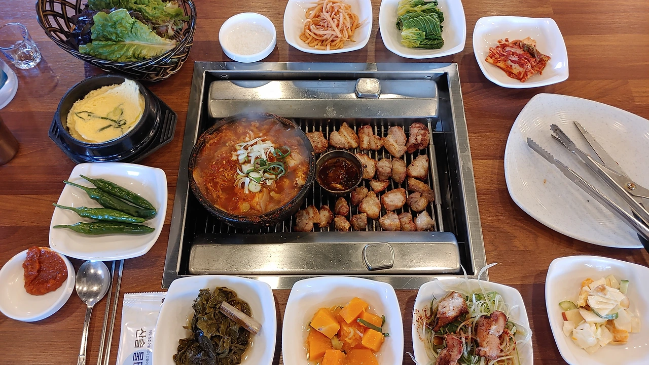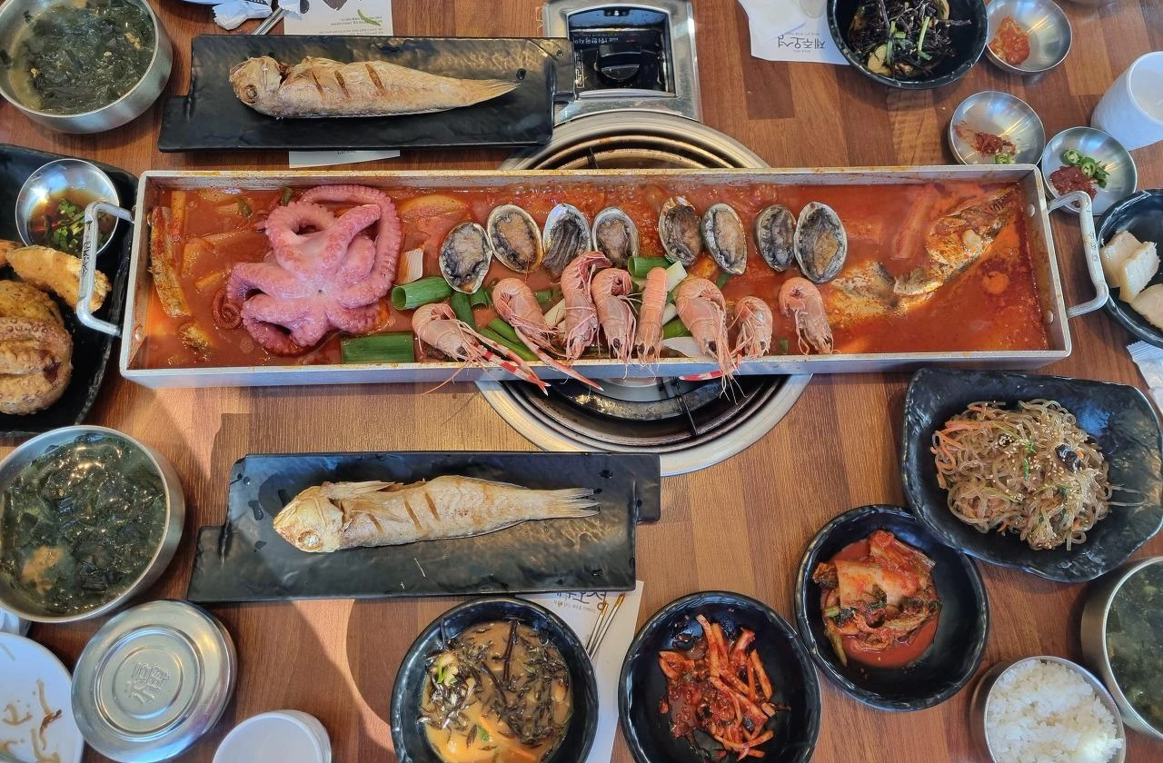 그곳 식당들의 대표 메뉴는 보통 돼지 두루치기 또는 수육과 생선 조림이나 조기, 옥돔 등 생선구이를 빼놓지 않는다.