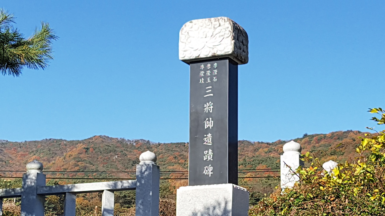 참, 양산 삼장수란 이징석(李澄石), 이징옥(李澄玉, 1399~1453). 이징규(李澄珪)를 말합니다. 이 삼 형제가 태어난 곳이 바로 양산시 하북면 삼수리입니다. 삼장수가 태어난 곳이라 마을 이름도 ‘삼수리(三帥里)’입니다. 삼장수 마을은 국도 35호선에서 하북면 진목마을에서 영축산이 있는 서쪽에 있습니다. 마을 주변이 예전에는 한가했는데 최근에 전원주택과 카페들이 들어와서 조금씩 변하고 있지만, 삼장수 마을은 아직은 예전과 비슷하네요. 한눈에 보면 장군이 태어날 장소라기보다 아늑하고 편안하게 살 선비 마을 같습니다. 다만 뒷산에는 영축산, 앞산에는 천성산과 금정산이 멀리 보이네요.