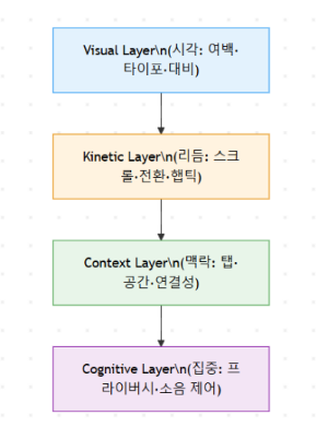 프레임률·스크롤 곡선·전환 애니메이션이 신뢰감과 피로도를 좌우한다. (저속-가속-감속의 곡선 설계가 핵심)