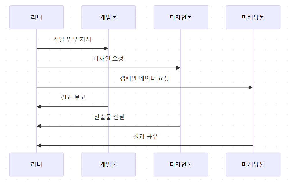 각 팀은 자신의 전문 영역 안에서 완성도를 높이지만, 정보는 리더를 경유해야만 다른 팀과 연결되죠