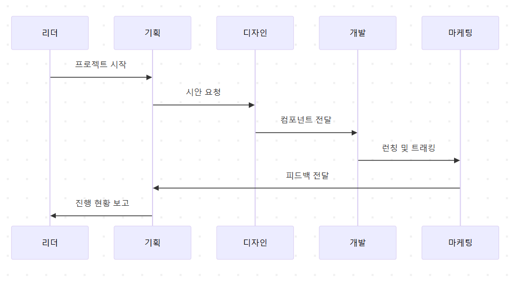 “기획 → 디자인 → 개발 → 런칭” 순으로 연동