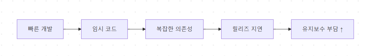 → “일단 돌아가게만 하자”는 선택이 쌓이면서 기술 부채 시작